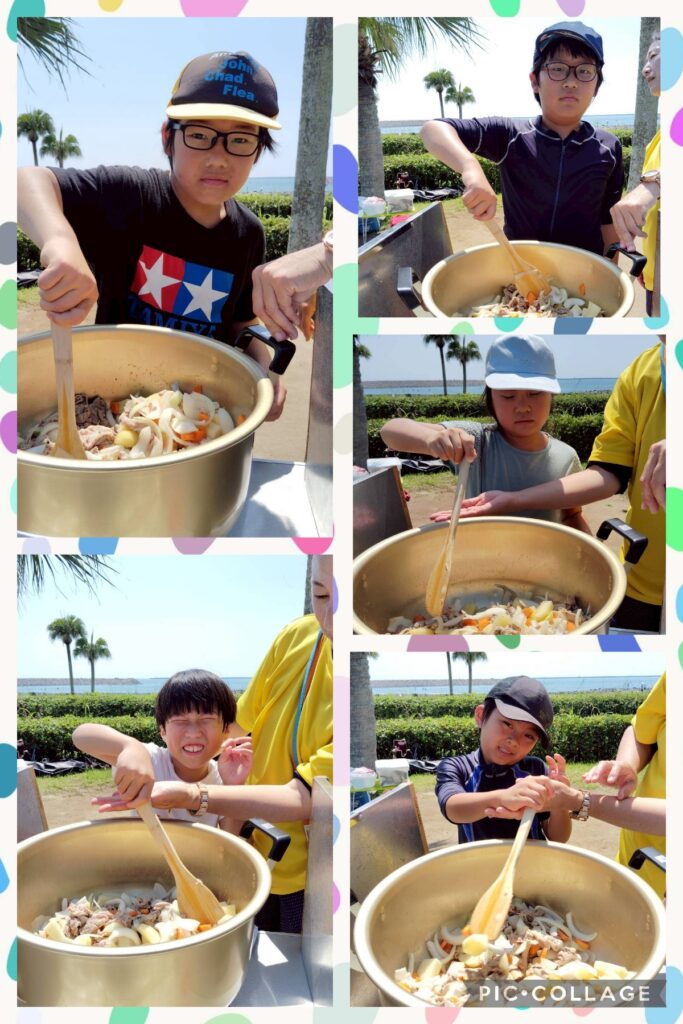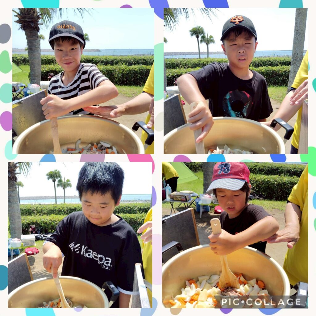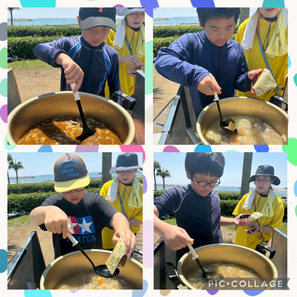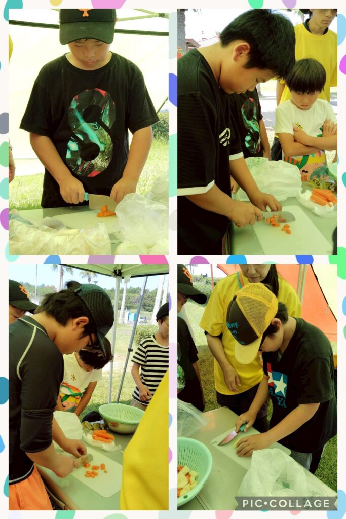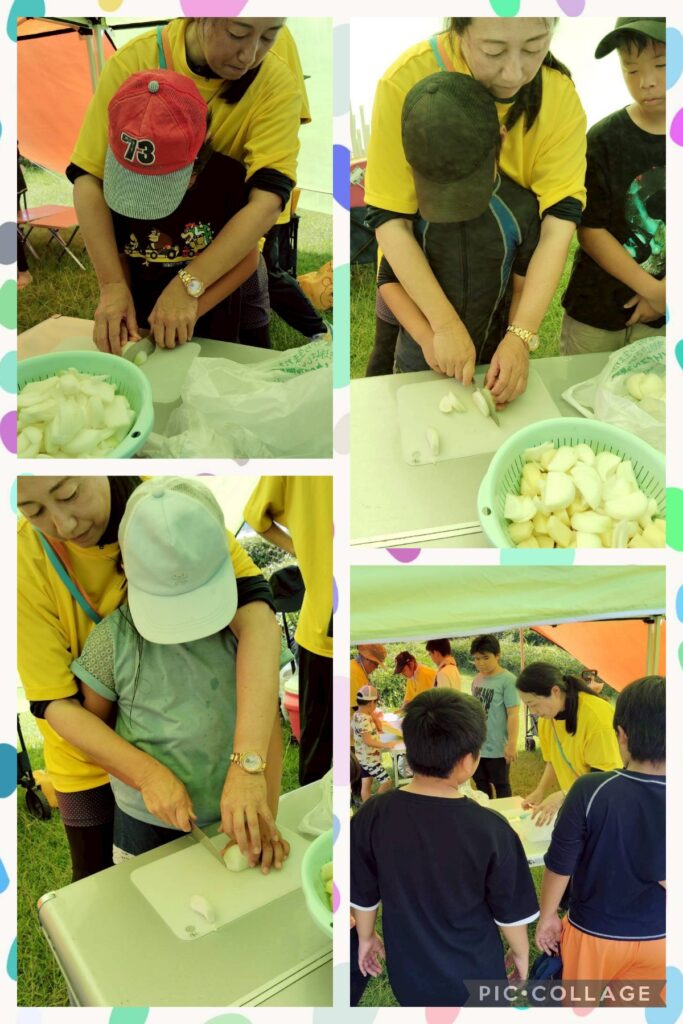 事業所ごとにカレー作り。みんなで力を合わせて作業ができました。おいしくモリモリ食べて、お鍋はキレイに空っぽになりました😄