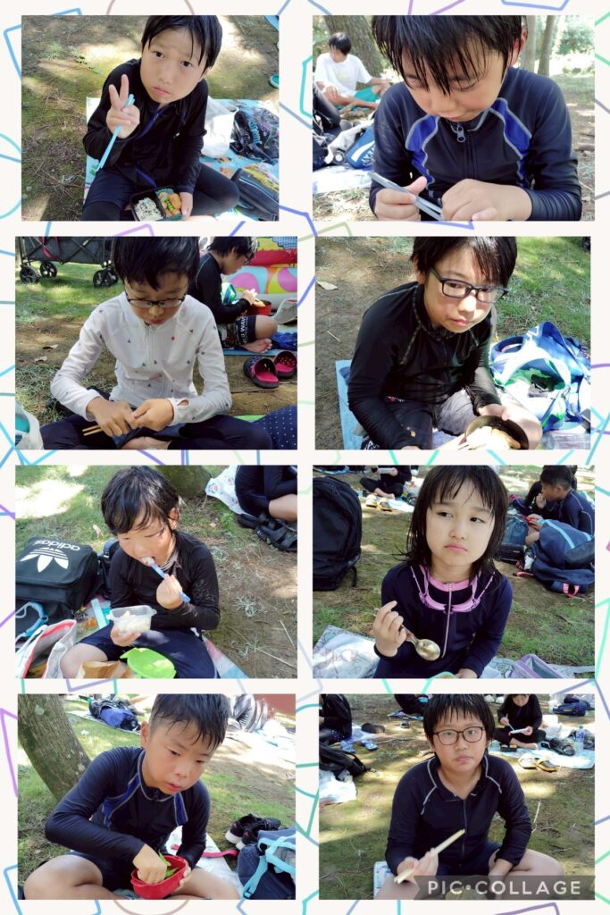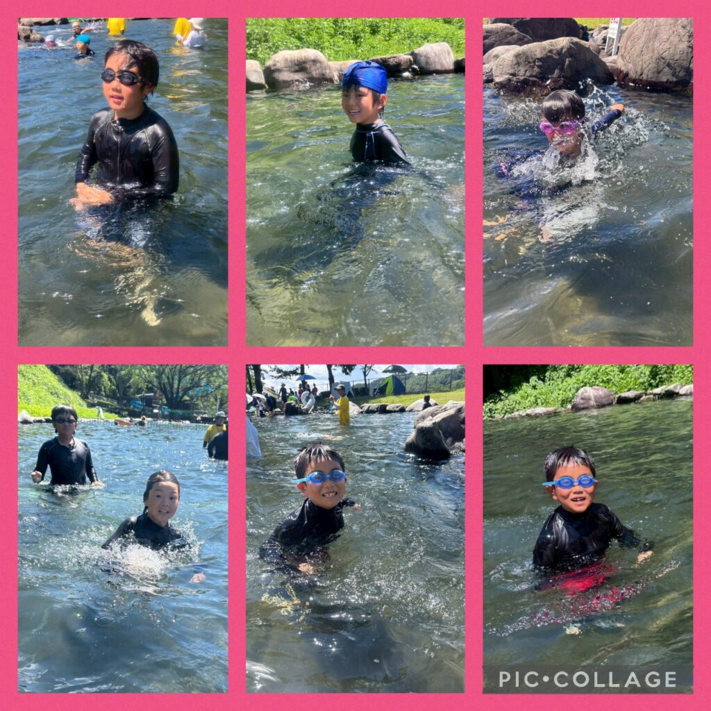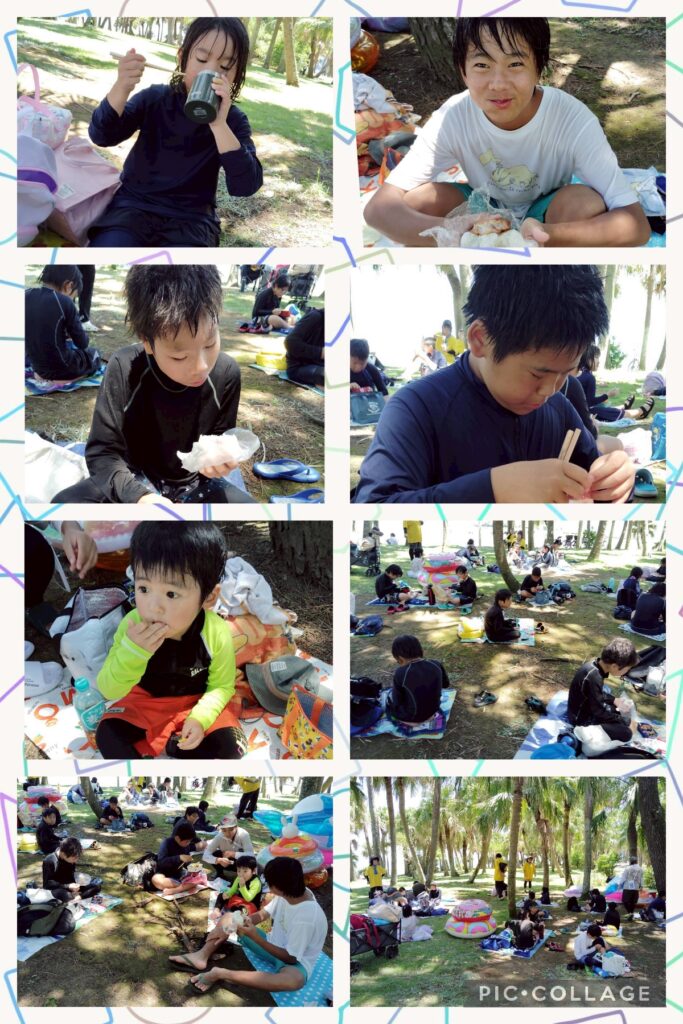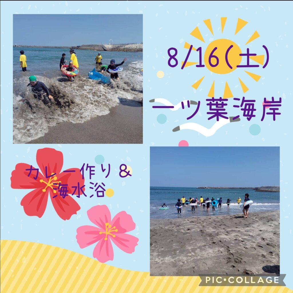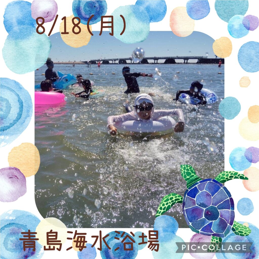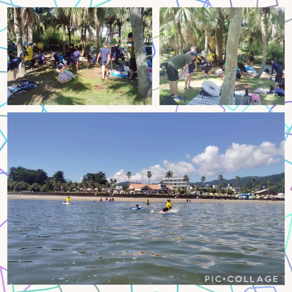 午後は遊泳ゾーンへ移動し、海水浴を楽しみました。近くを船が通ると、波がザブ〜ン🌊浮き輪で波打ち際まで上手に波乗りできました😊