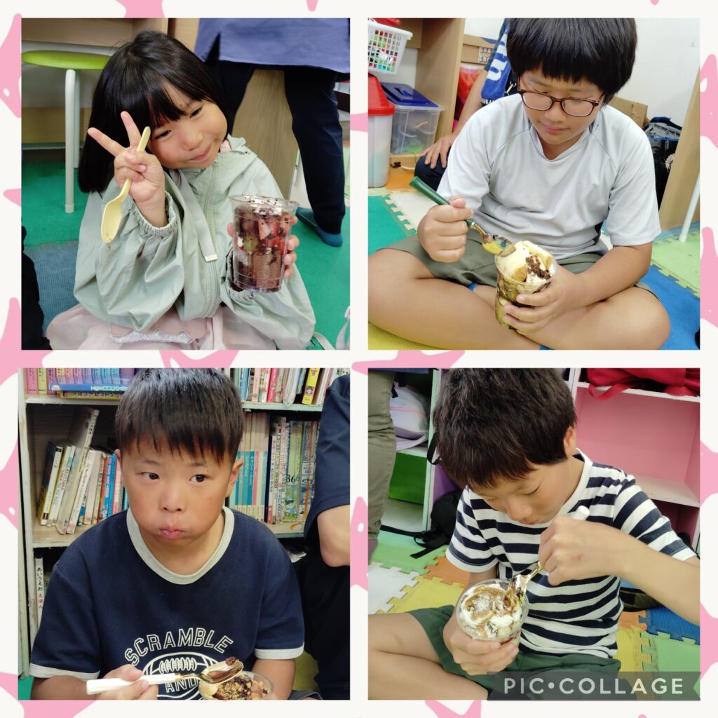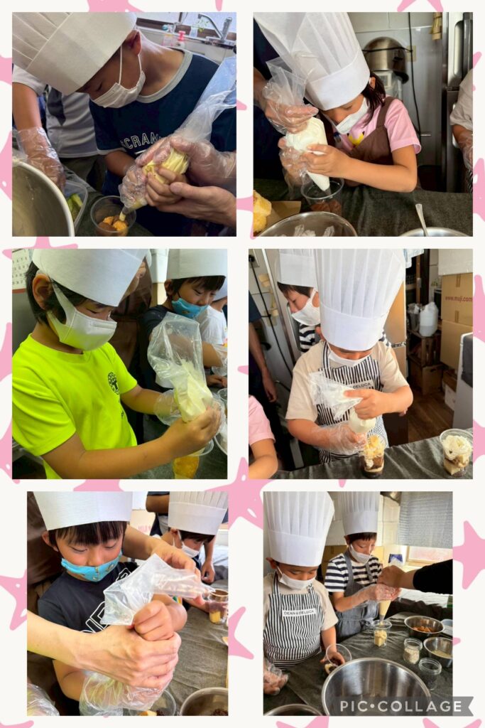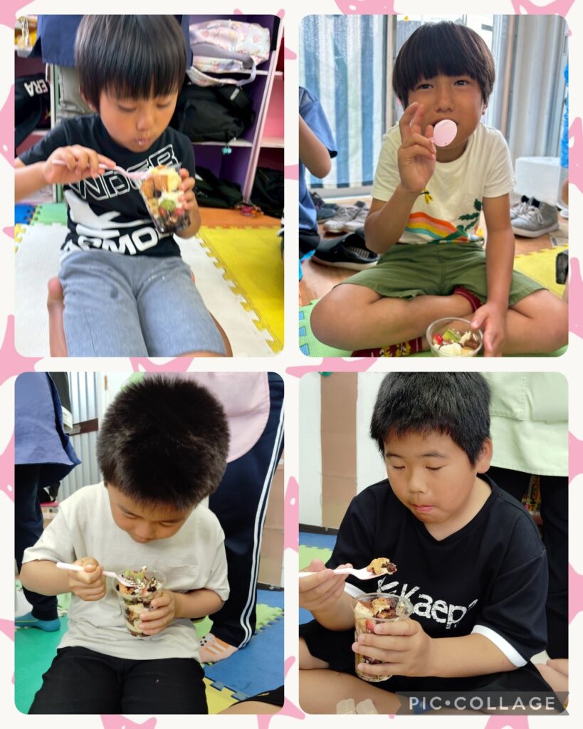 たくさんの材料に悩みながら各々オリジナルパフェを作りました。