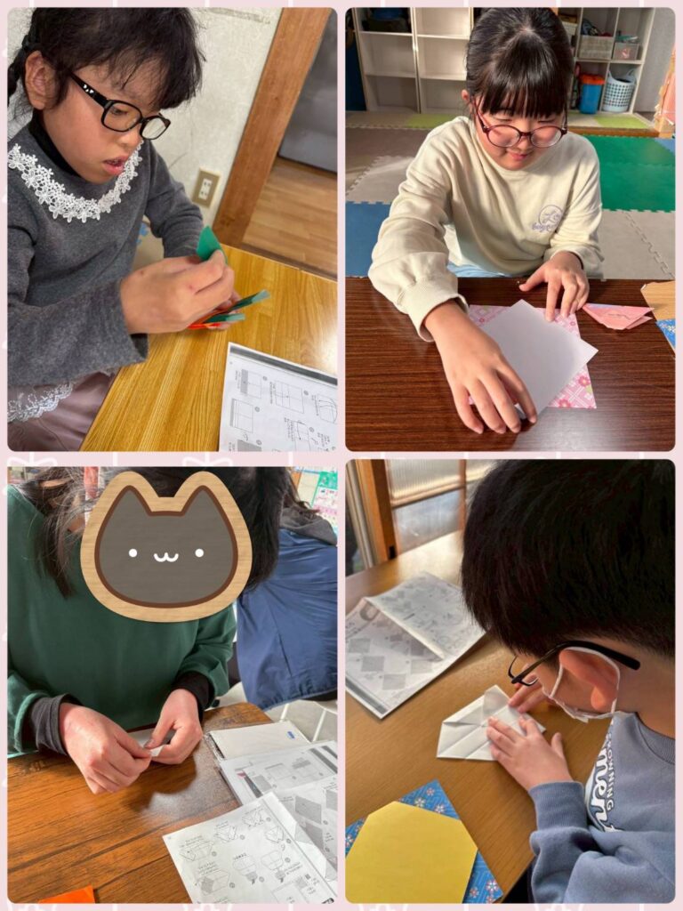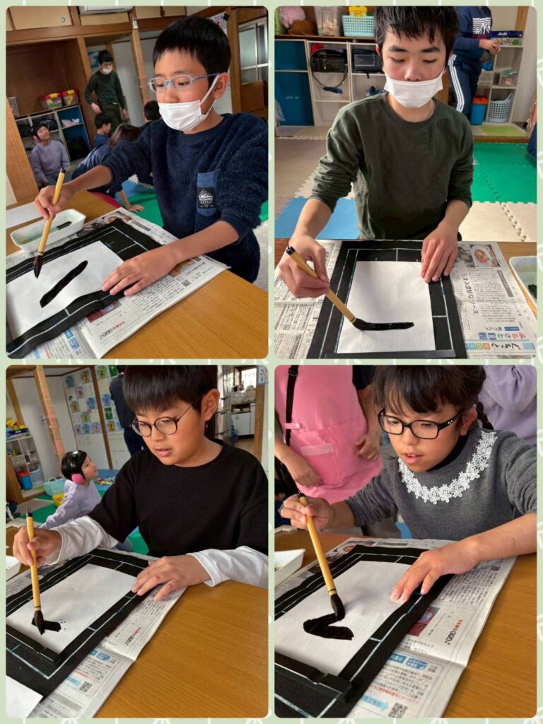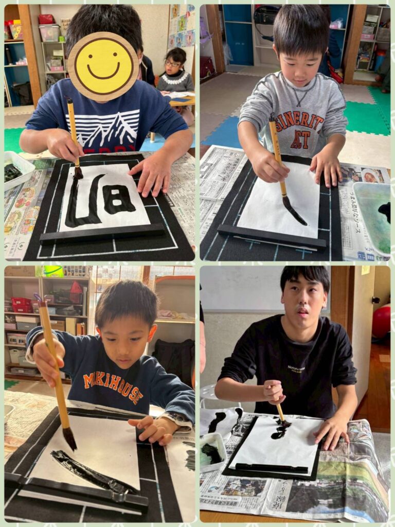 あけましておめでとうございます🌅 今年もよろしくお願い致します☺️ しまのうちは年明け6日火曜日に活動が始まりました 書き初めや正月の飾りで玄関の壁が華やかです 👇️作製の様子です