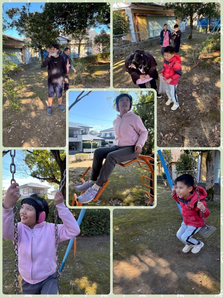 まだ冬休みだった児童は近くの公園にお散歩 ブランコなどの遊具で過ごしたり、どんぐり拾いをしたり…思い思いに過ごしました👇️