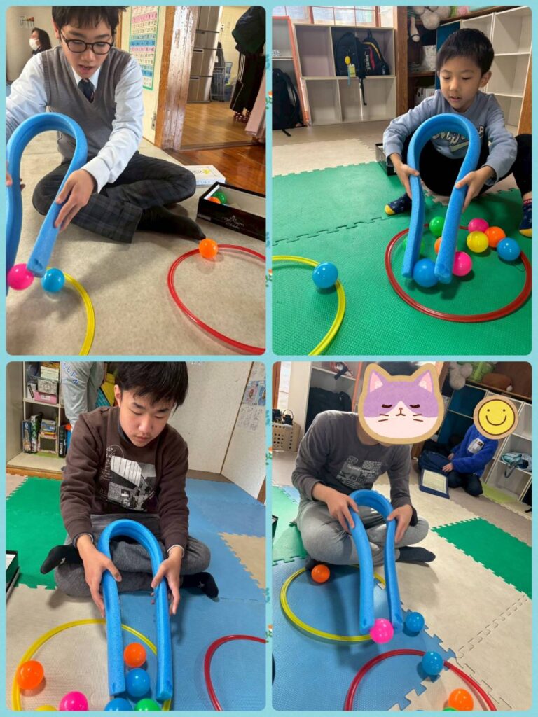 集団活動ではバランスボールを使ったボール渡しゲームと新聞じゃんけんをしました👇️