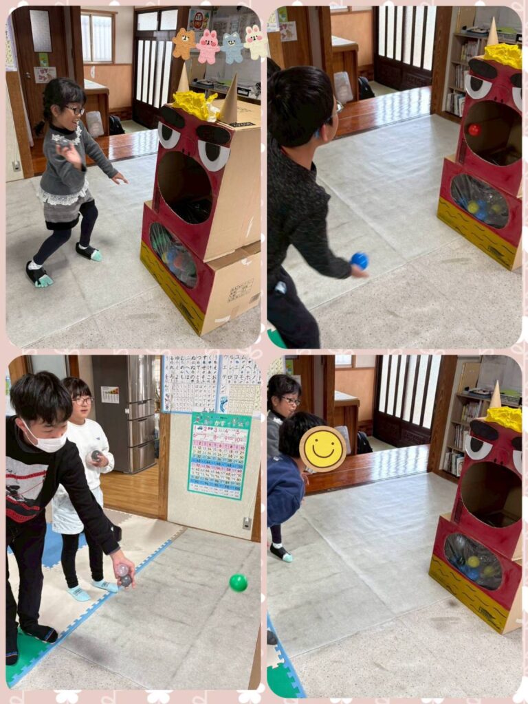 土曜日の午後は鬼に向かって豆まきならぬボール投げや鬼ごっこをして楽しみました👹👇️