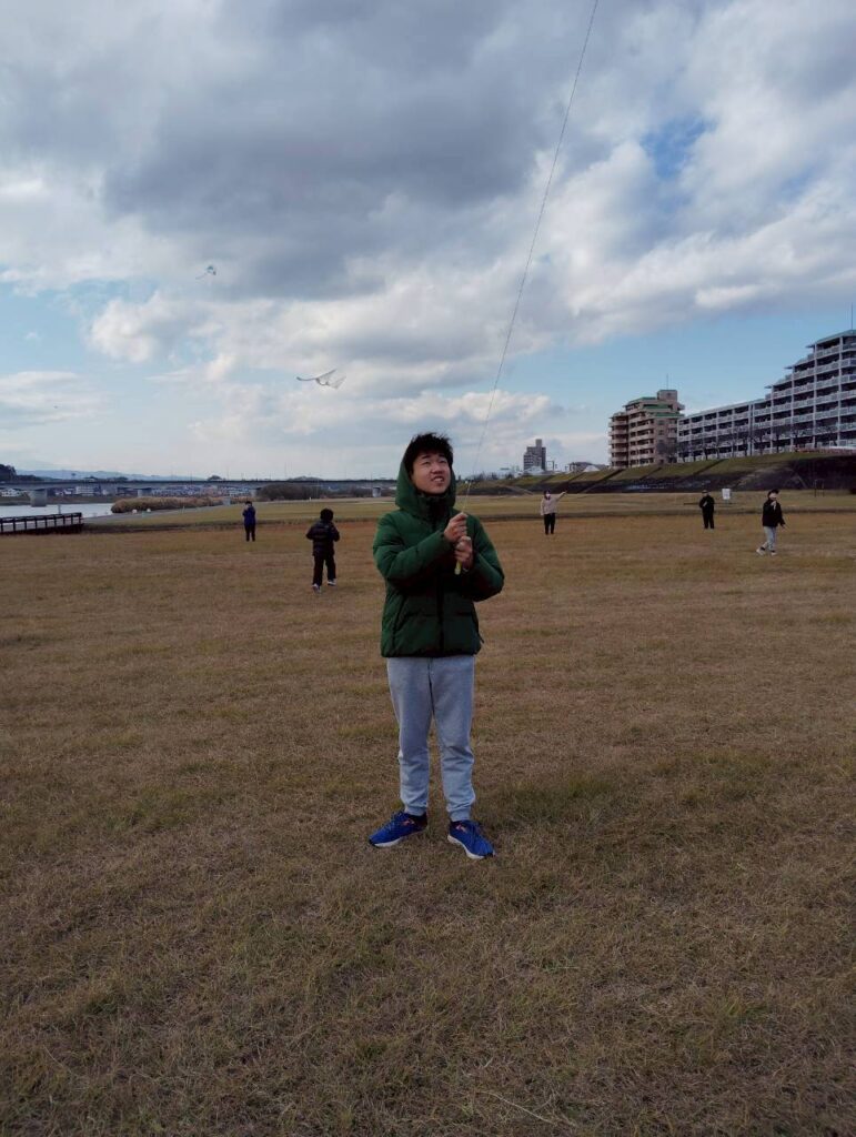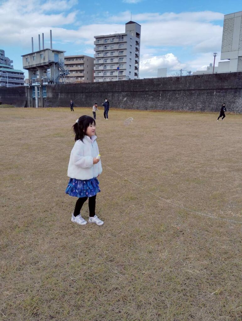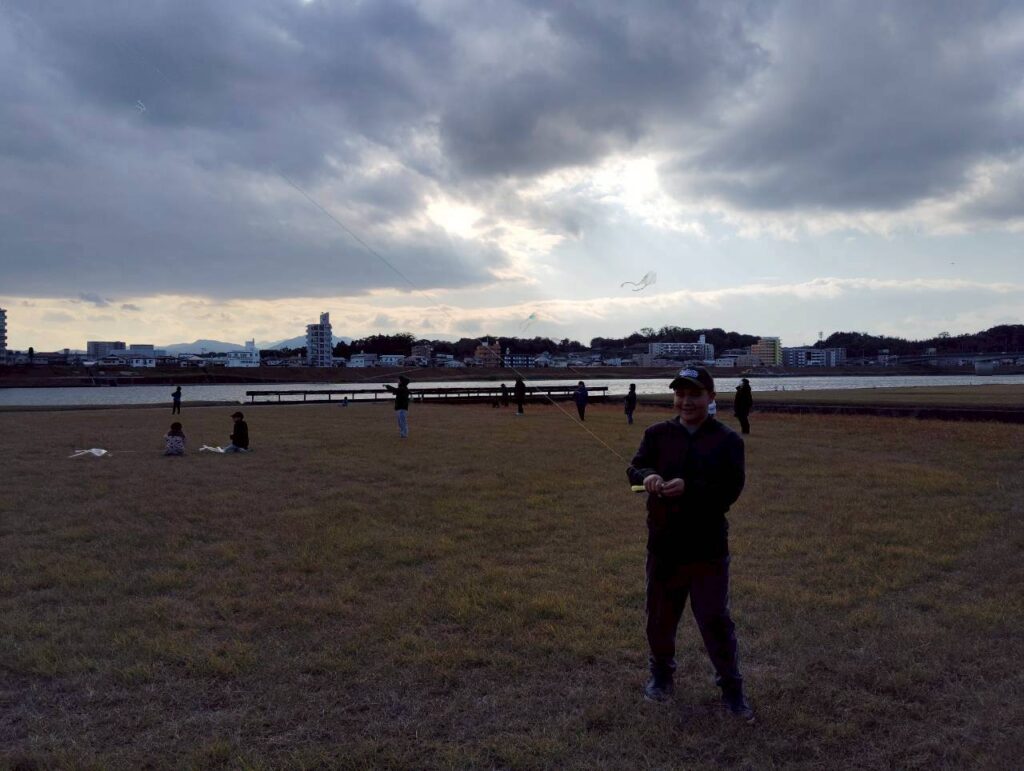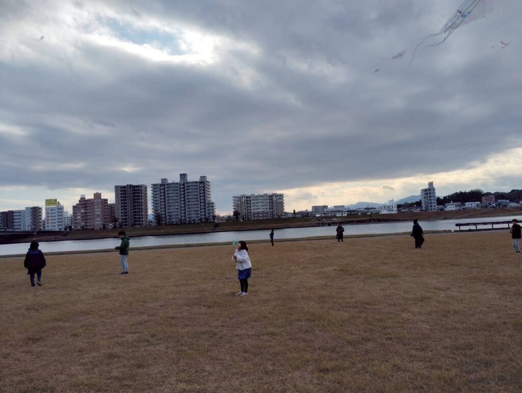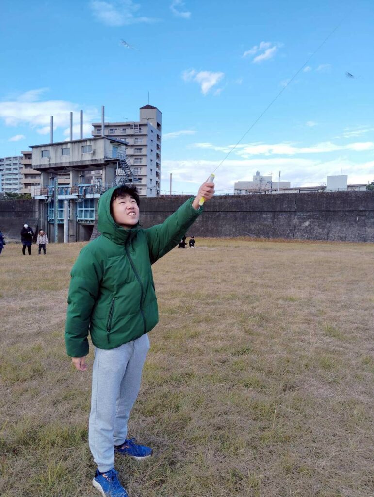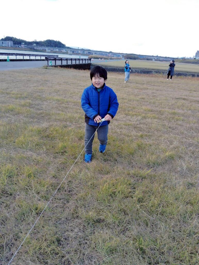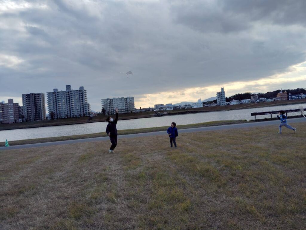 1/5(月) 凧揚げ〜市役所下の大淀川河川敷で空高く凧揚げをしました。