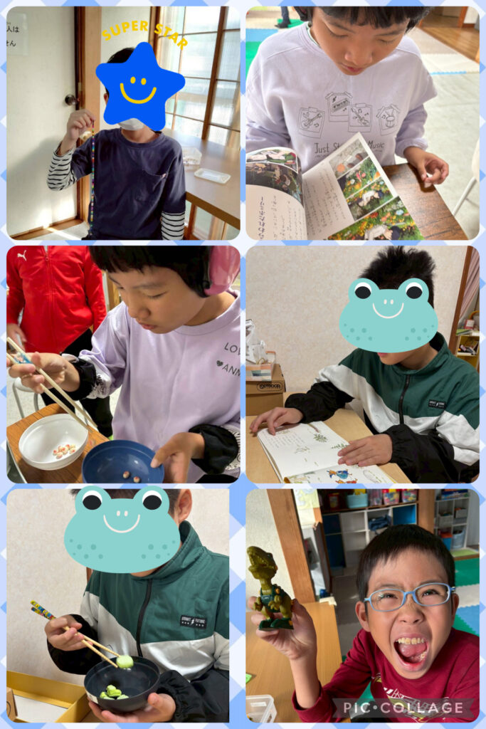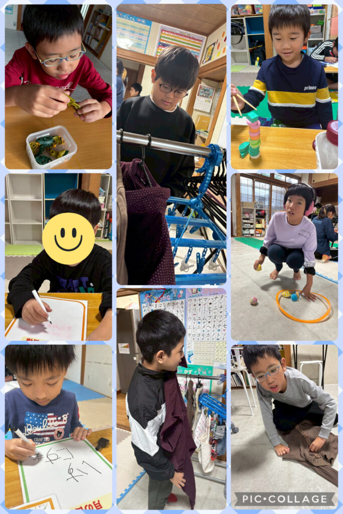 今週の練習の様子です。手指訓練や記憶力に関するものだけではなく生活に関わる練習も児童に合わせて取り組みます。事業所でできるようになったことをぜひお家でもお手伝いしてみてね、と声かけをしています。