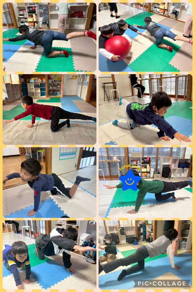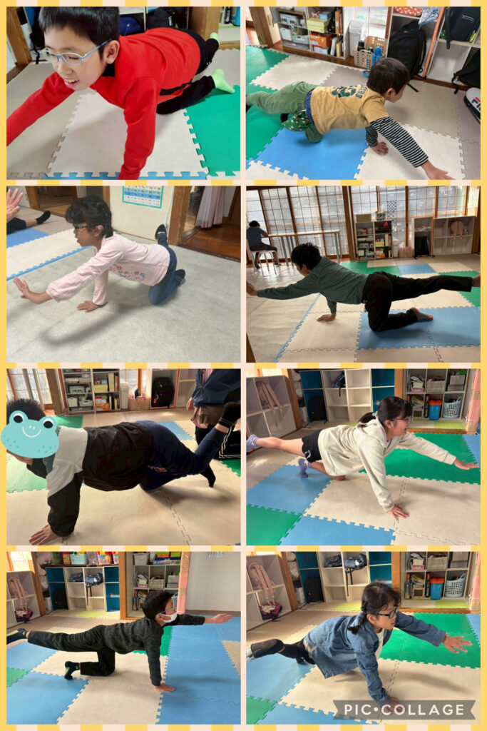そして今週の運動は体幹運動です。1週間繰り返すことで初めは5秒のキープも難しかった児童でも10秒間キープできるようになっているのを見て子どもたちの無限の可能性を感じます🌟