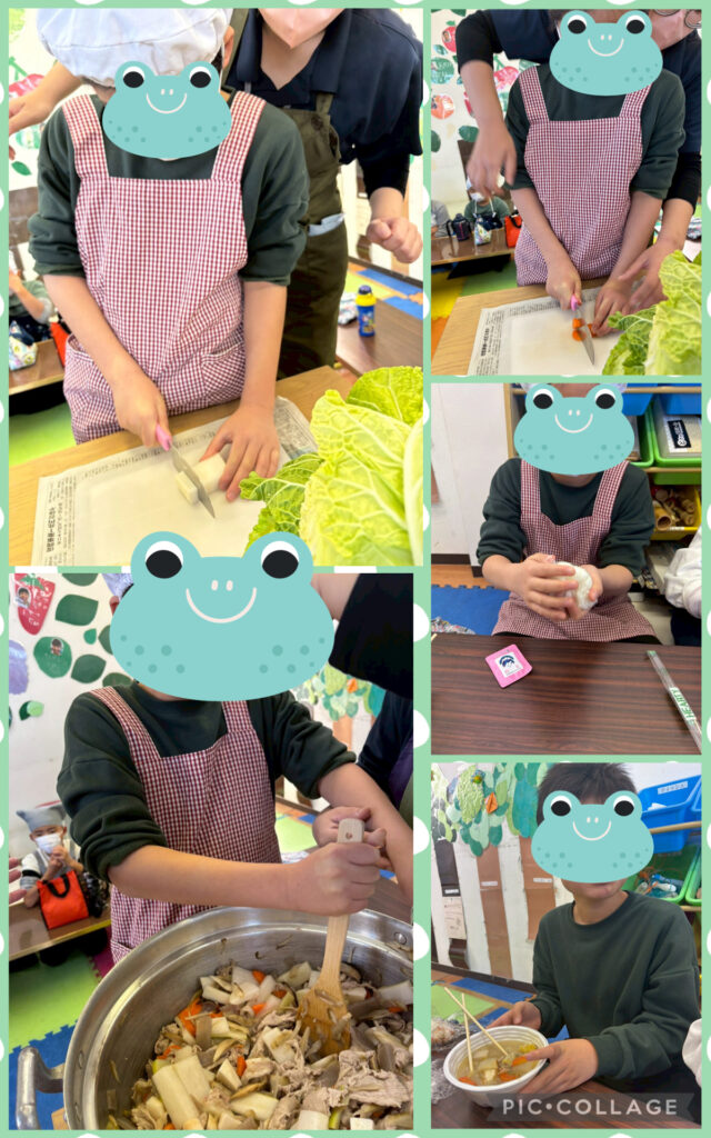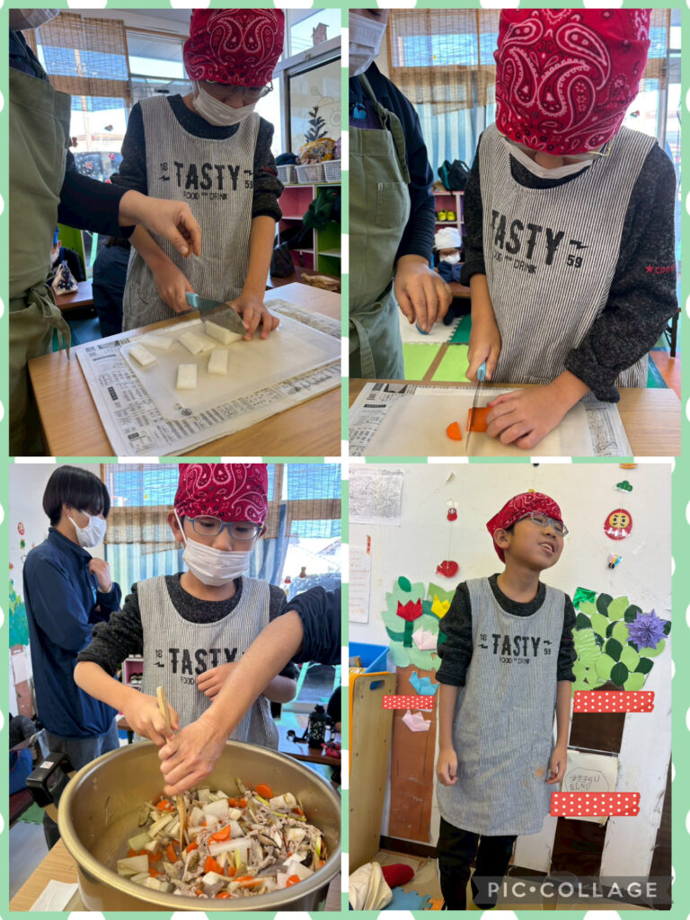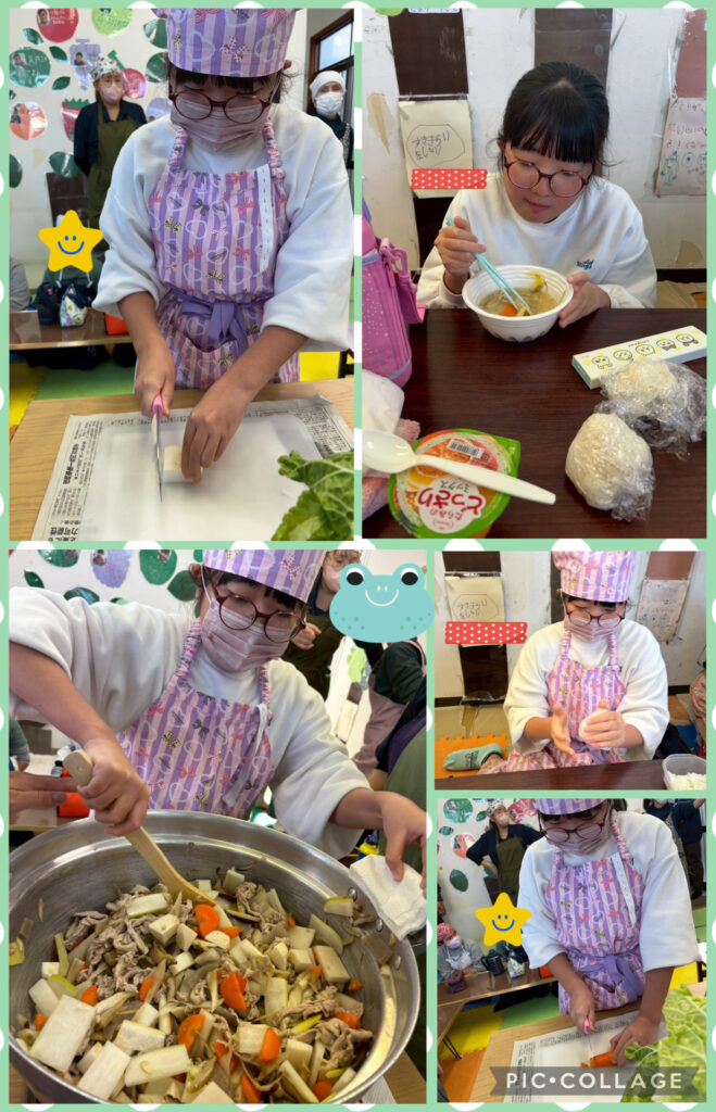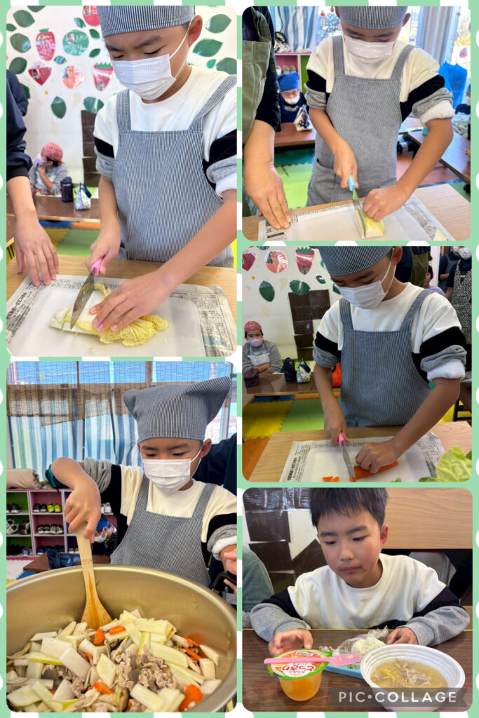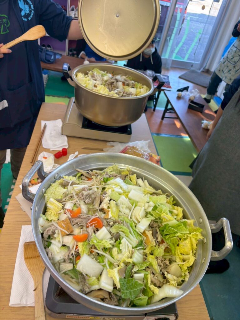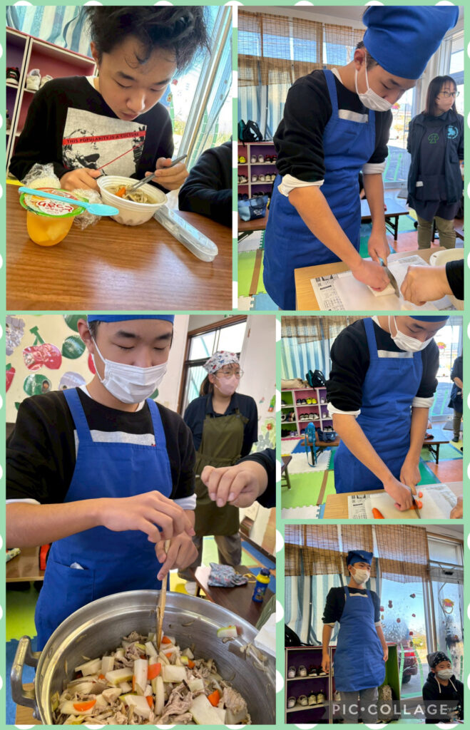 そして年末最後は3事業所合同で豚汁作りをしました。材料を切ったり混ぜたりとみんなで協力することで具沢山の美味しい豚汁が出来上がりました!そして今年を振り返ってそれそれ頑張ったことや来年頑張りたいこと、目標の発表をしました。