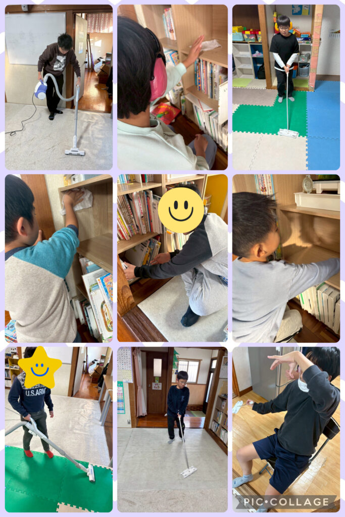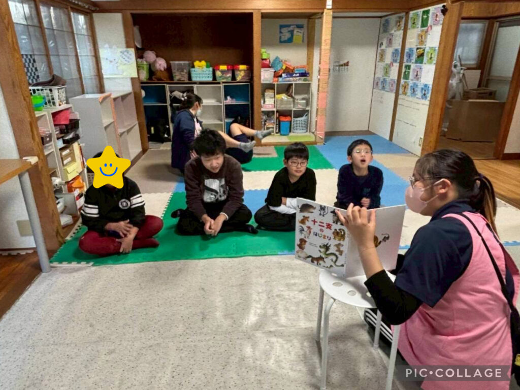 年末ということで大掃除をしてもらったり帰りの会では干支の由縁になった絵本の読み聞かせや「2025ありがとう」を児童に書いてもらいました。