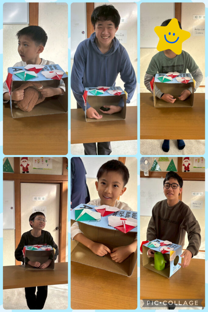 25日にはみんなでクリスマス会🎄お弁当を食べて🍱ビンゴや箱の中身はなんだろな?などのレクリエーションの後おやつパーティーをしました。