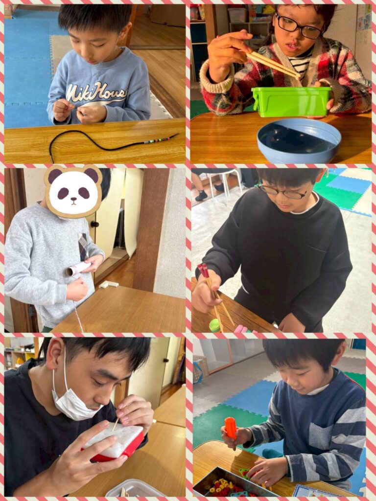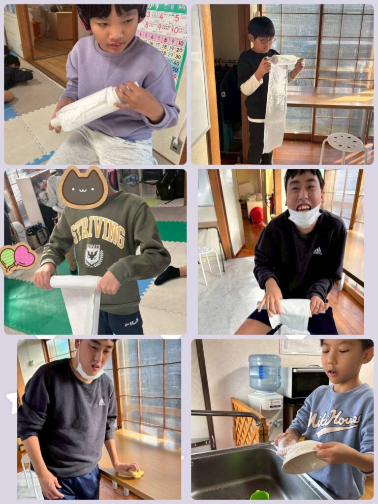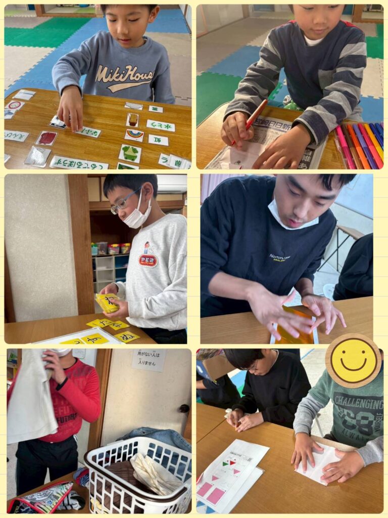 👆️もちろん手指や認知の練習にも取り組んでいます。生活に関わる洗濯物たたみやおやつの前後のテーブル拭き、食器洗いもじょうずになっています。ぜひお家でも一緒にやってみてくださいね🍀