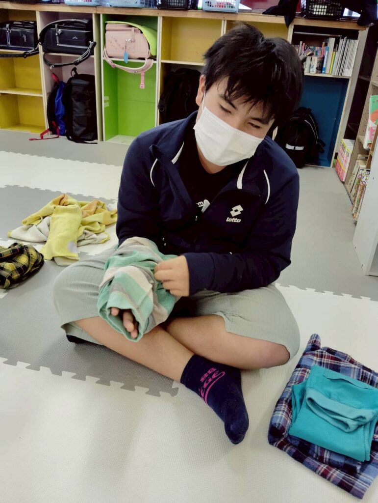 洗濯物たたみですが、家でもお手伝いできているかな?