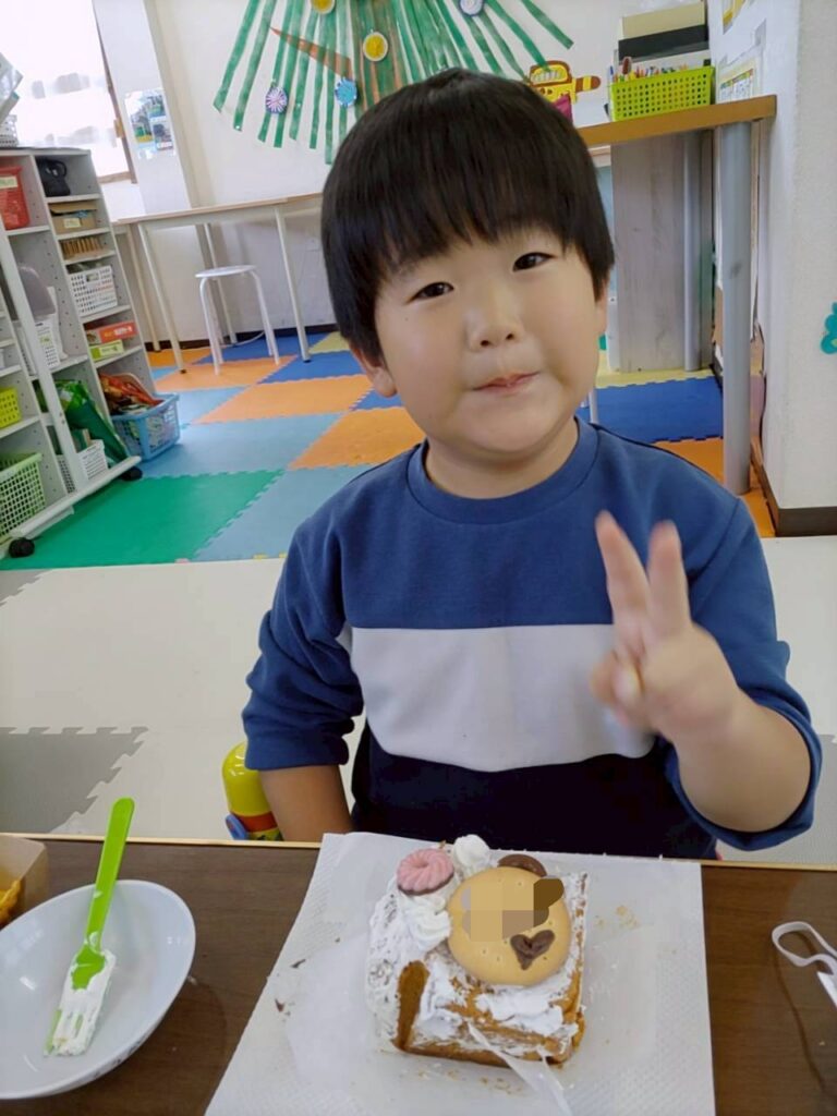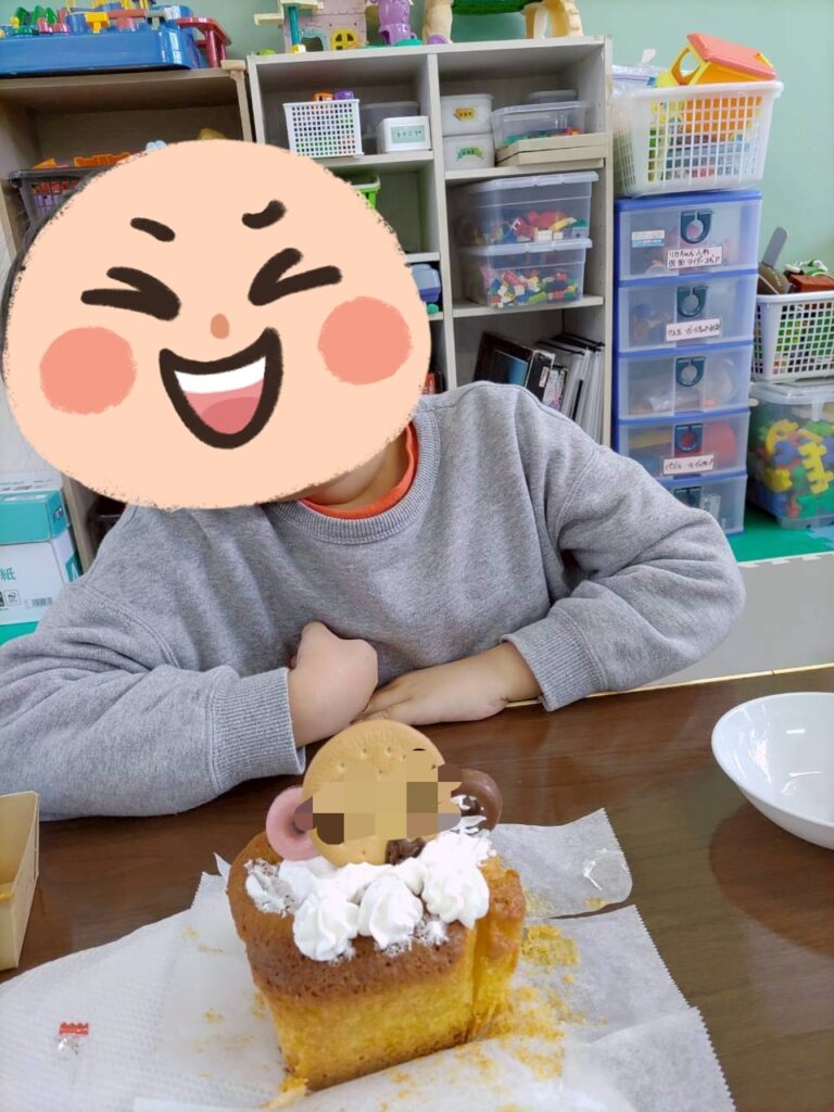 12/6(土)自分たちでケーキを作り、誕生日祝いをしました。