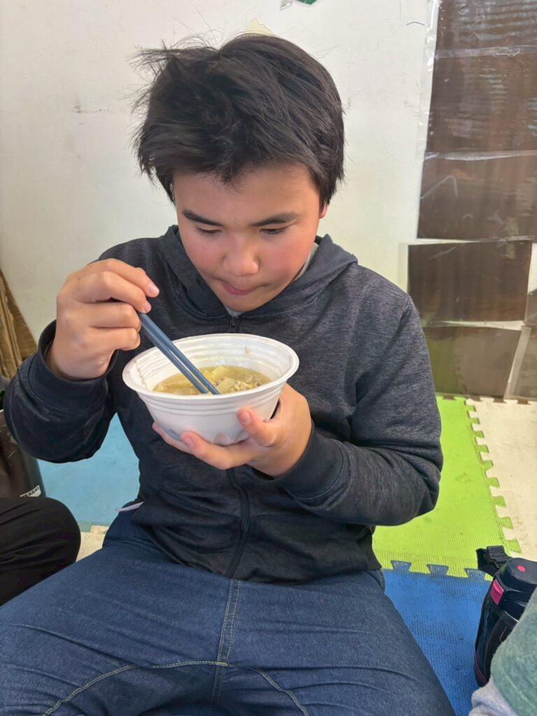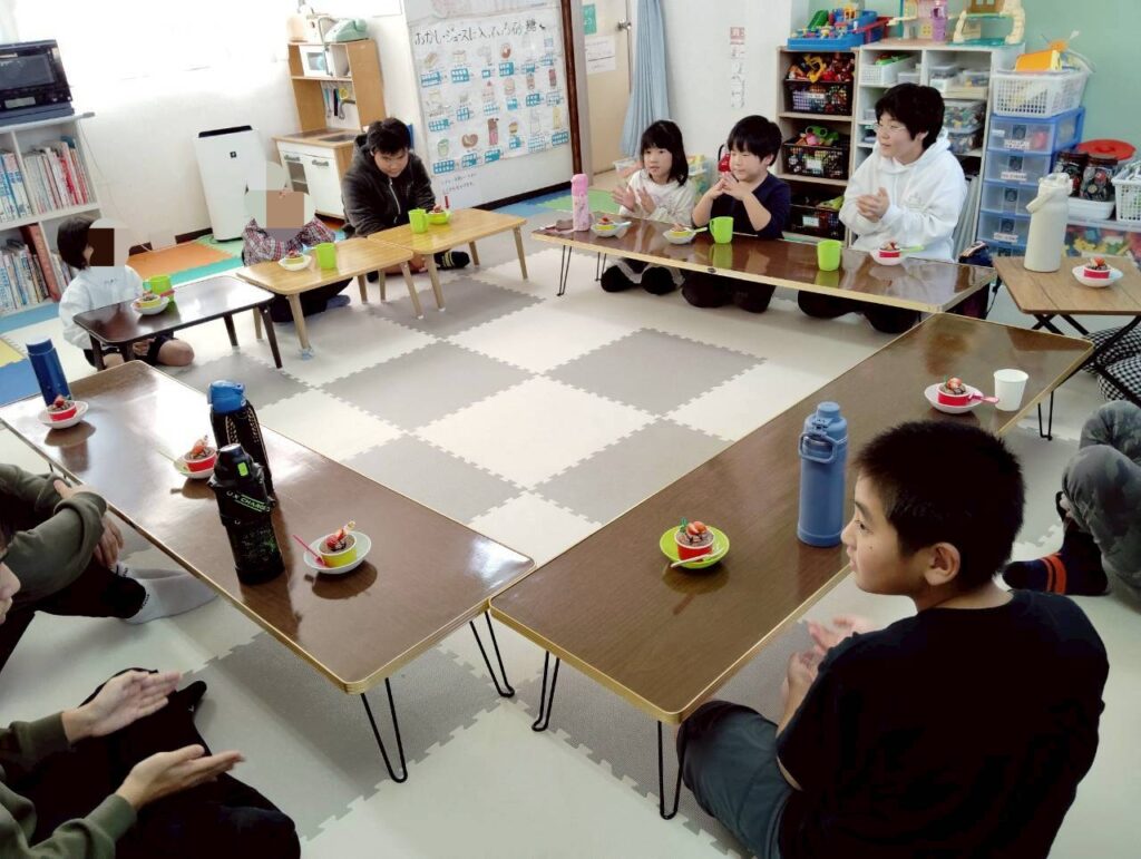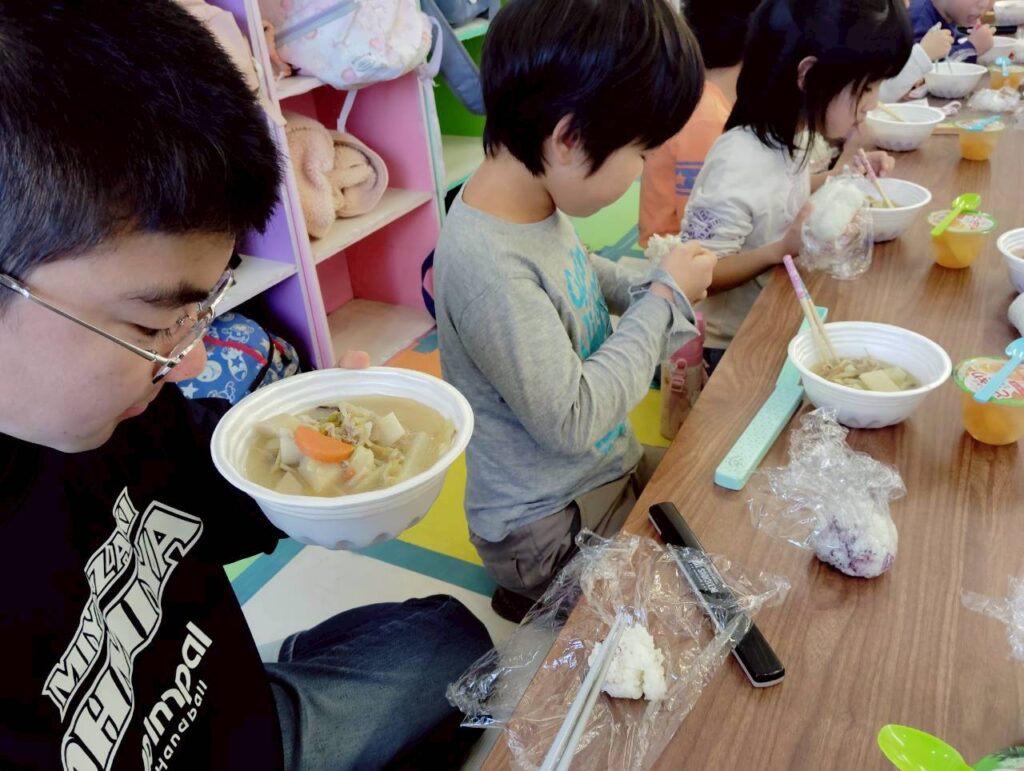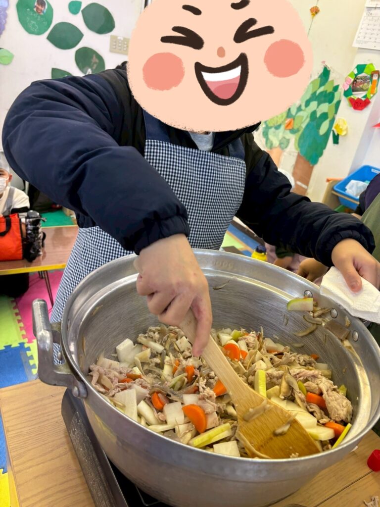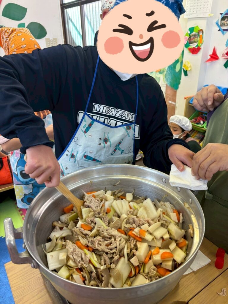 👨‍🍳12/27 つきみがおかに3事業所が集まり、おにぎりと豚汁を作ったり、一緒に遊びました。1年間の振り返りも発表しました。