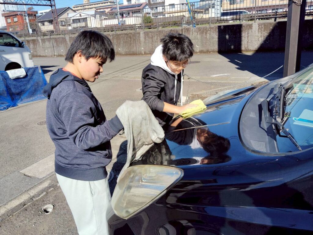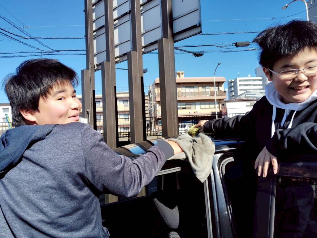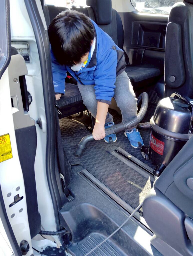 皆で部屋や車をきれいにしました。