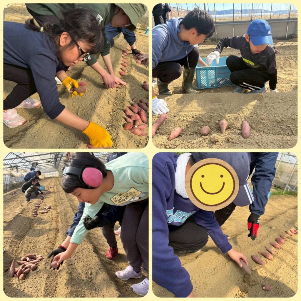 土曜日は久しぶりにCoCoCRoファームでの活動でした。さつまいもの種芋をハウスに植える作業です。等間隔に畝に並べるだけでしたが、これがなかなか難しかったですね。みんな本当に頑張りました!🍠 👇️