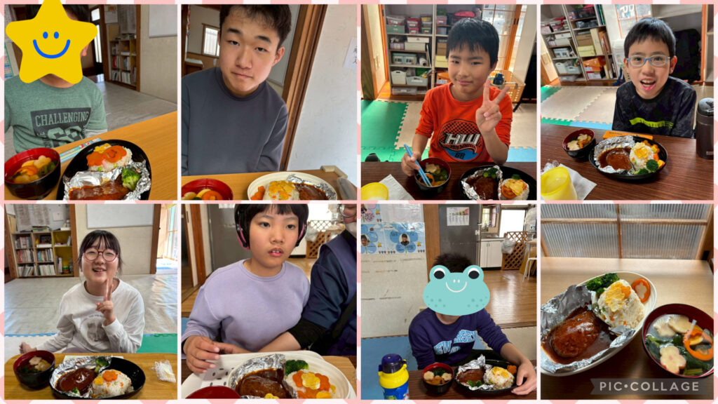 今週の土曜日はひなまつりの料理を作りました。型をとったりちらし寿司を混ぜたり活動時間が長い中でみんな最後まで頑張りました。「大地のごはんは最高だぁ!」と笑顔で食べる姿を見て私たちふもほっこりしました。