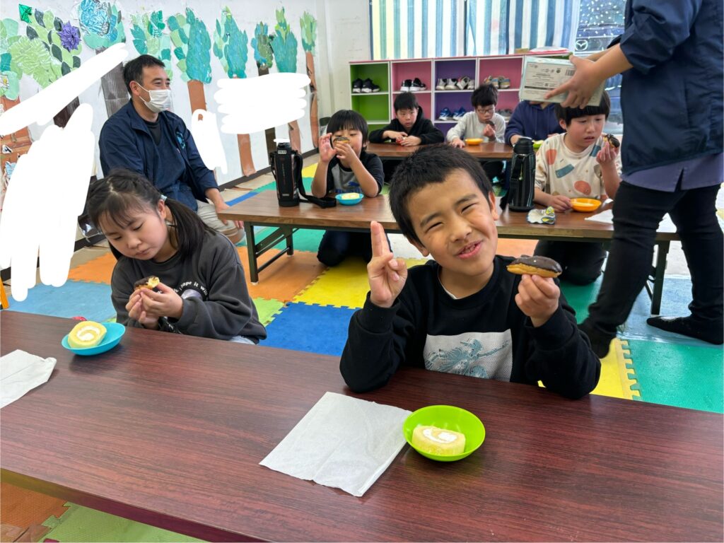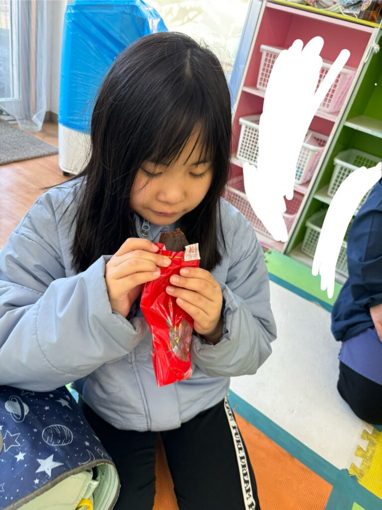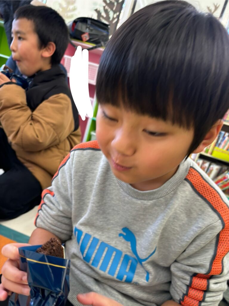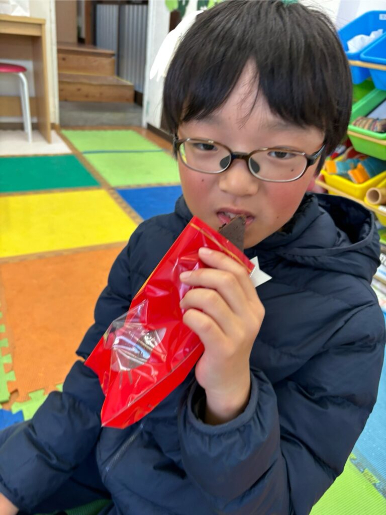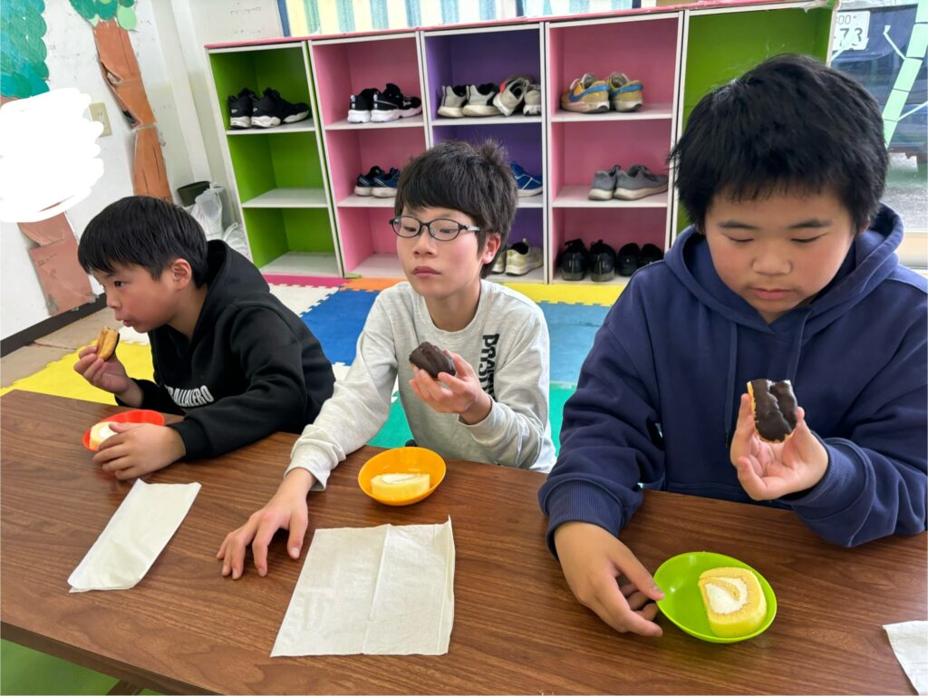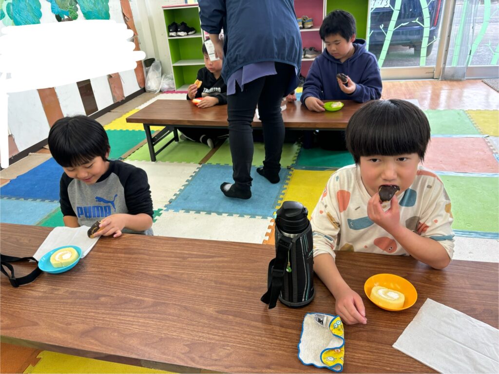 おやつでは、バレンタインなのでエクレアとロールケーキを食べました。