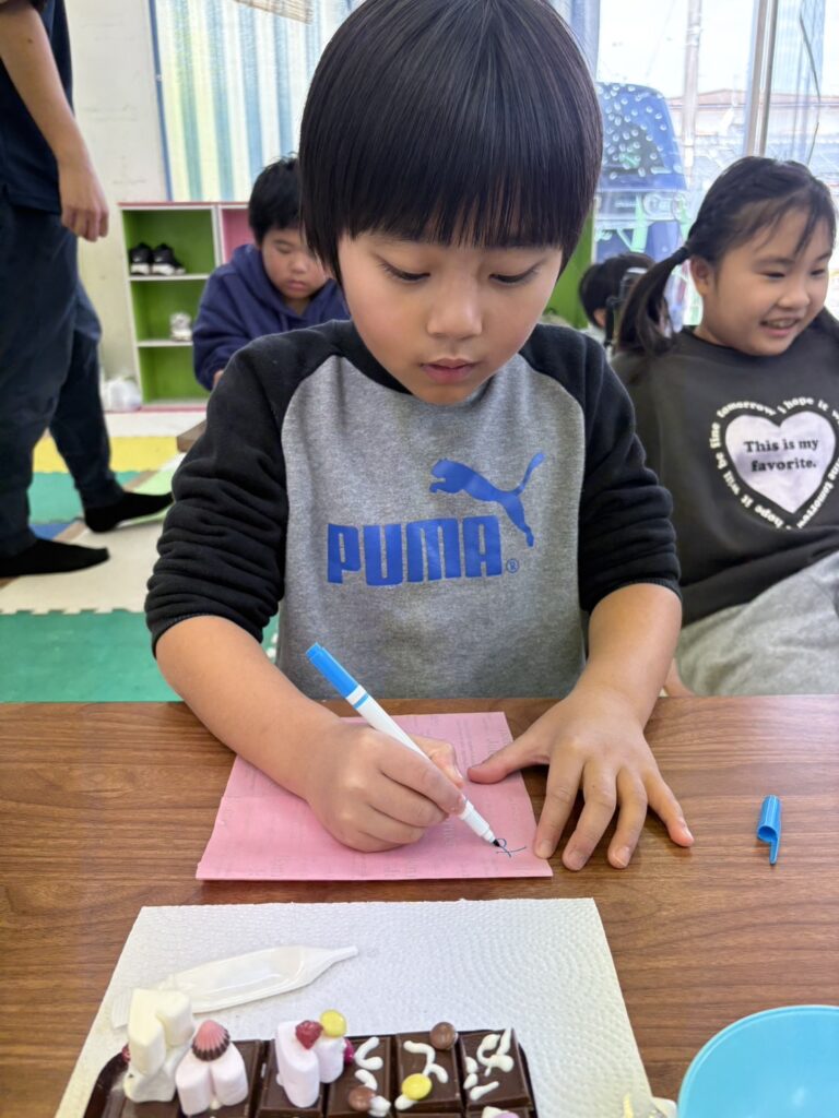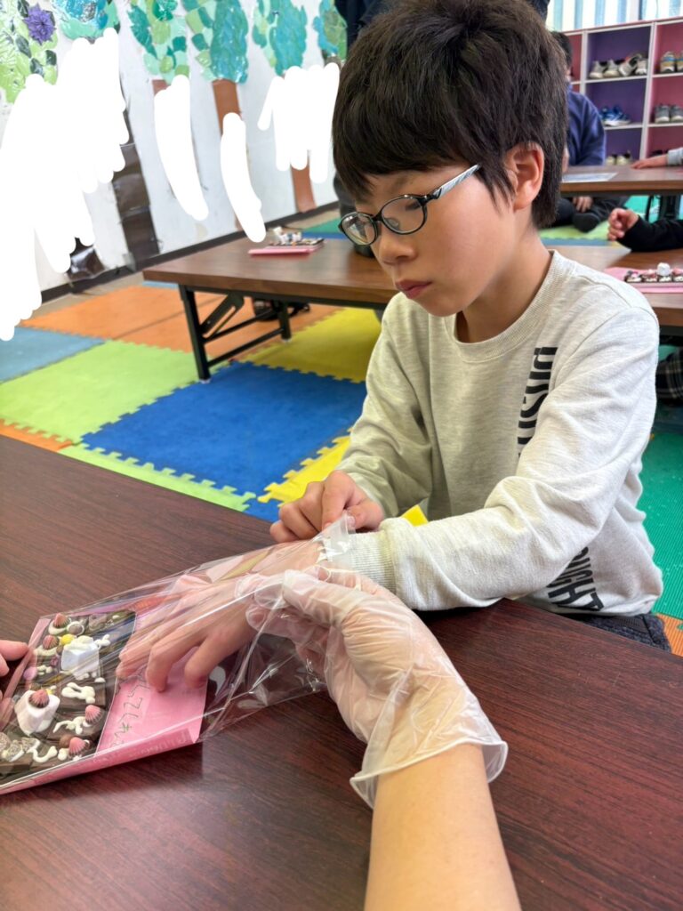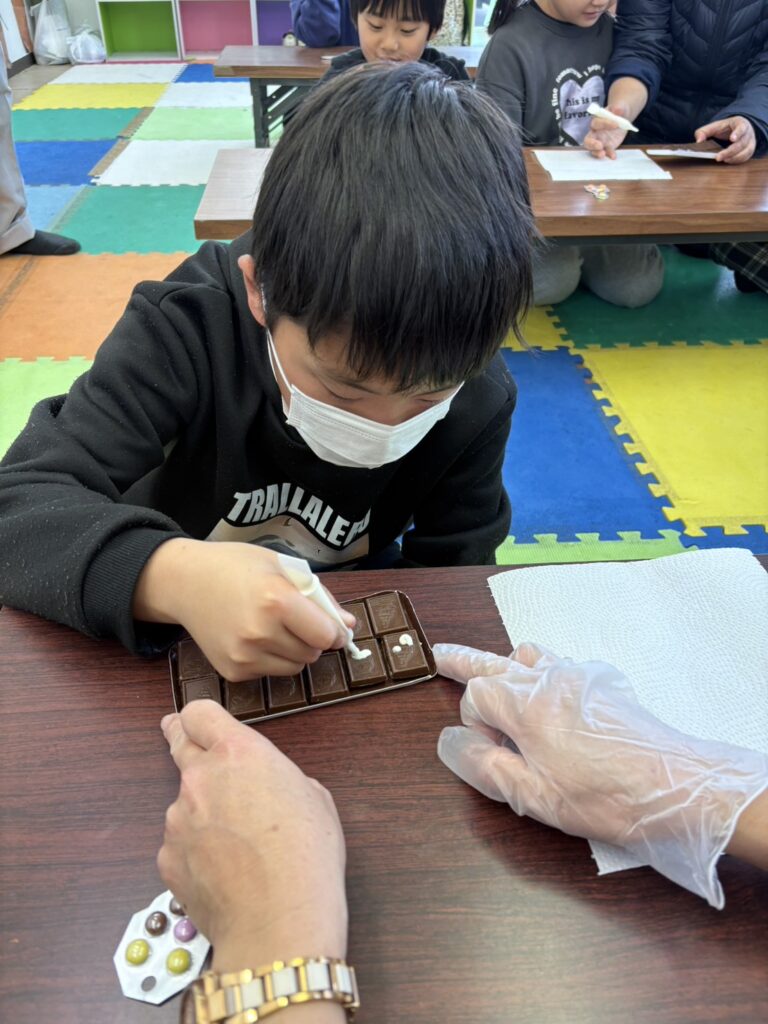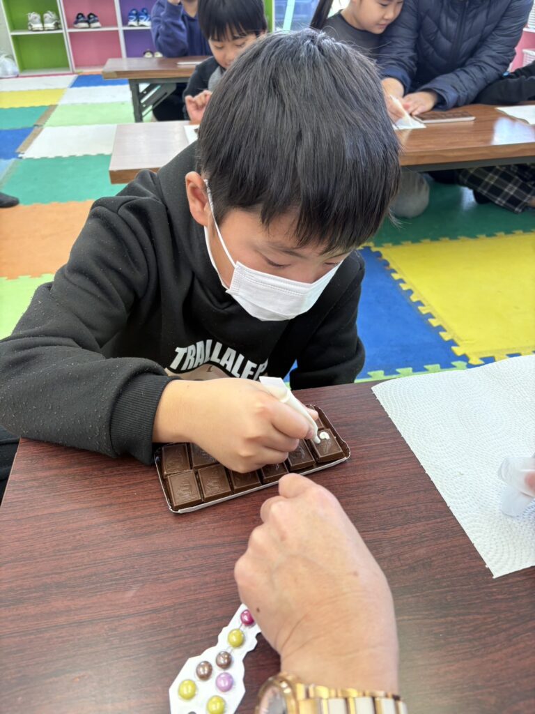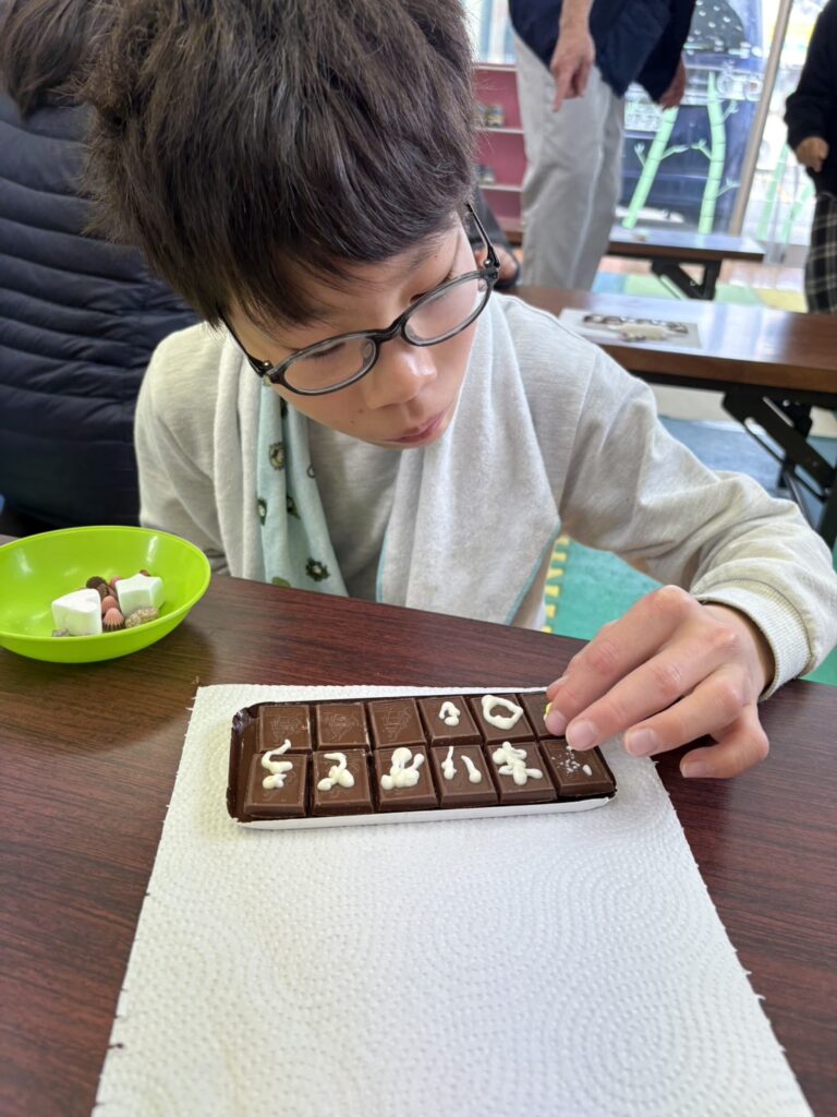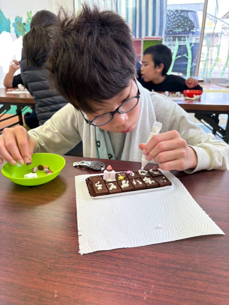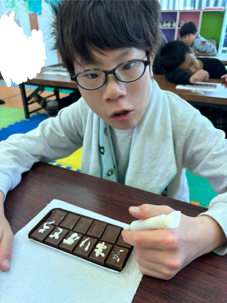 みんな一生懸命、チョコペンで字を書いてデコレーションしていました。