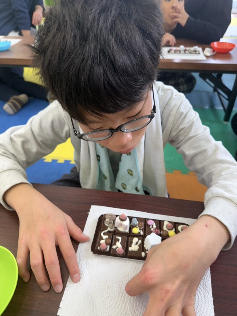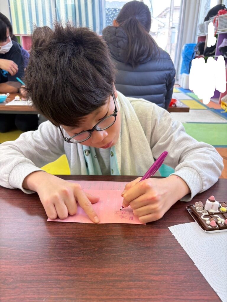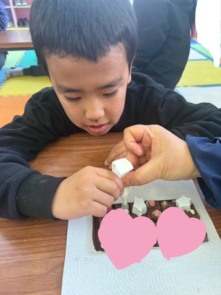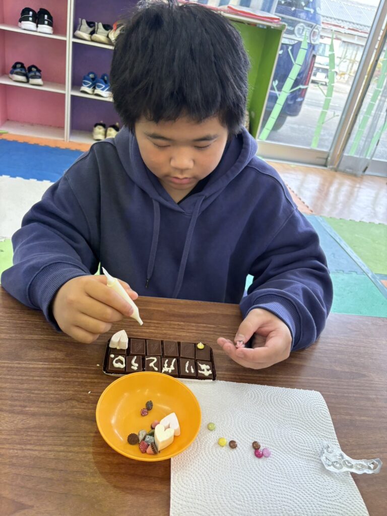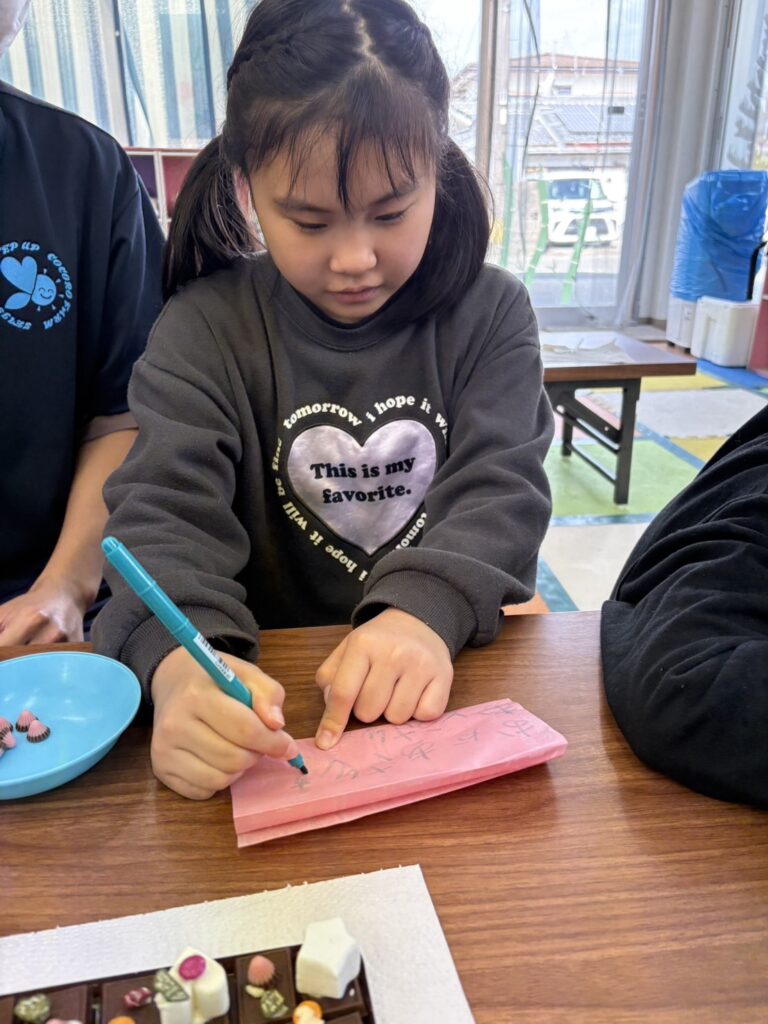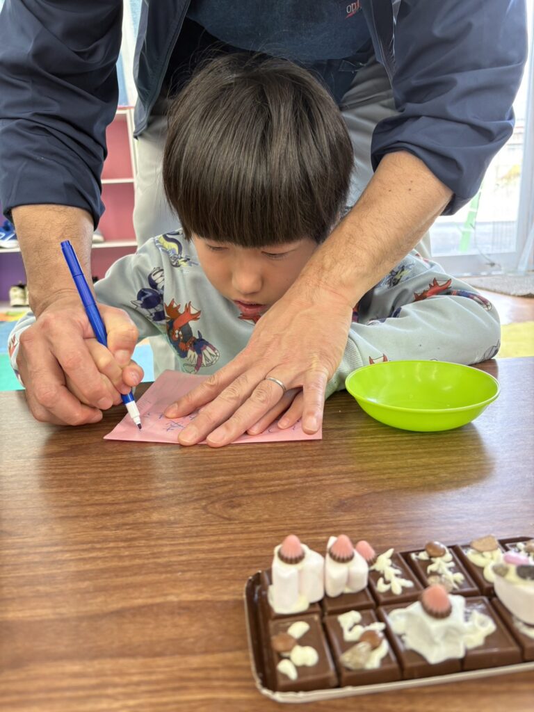 みんな一生懸命、チョコペンで字を書いてデコレーションしていました。
