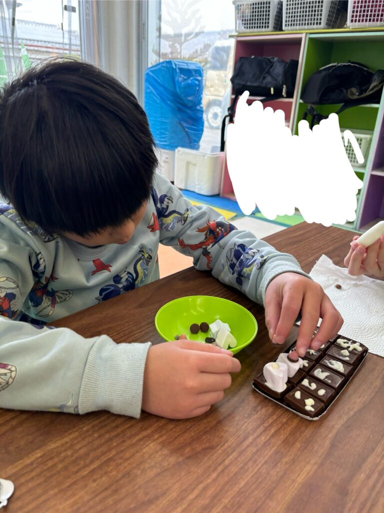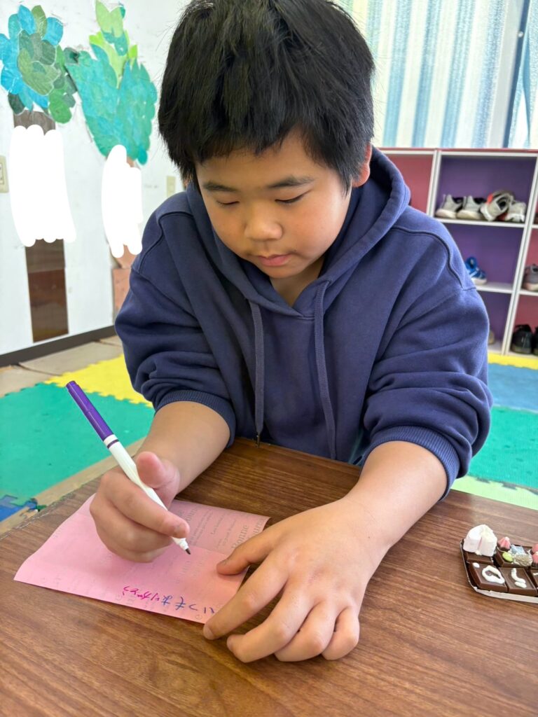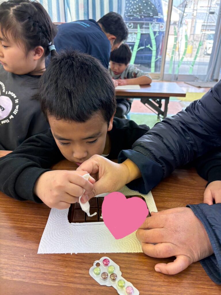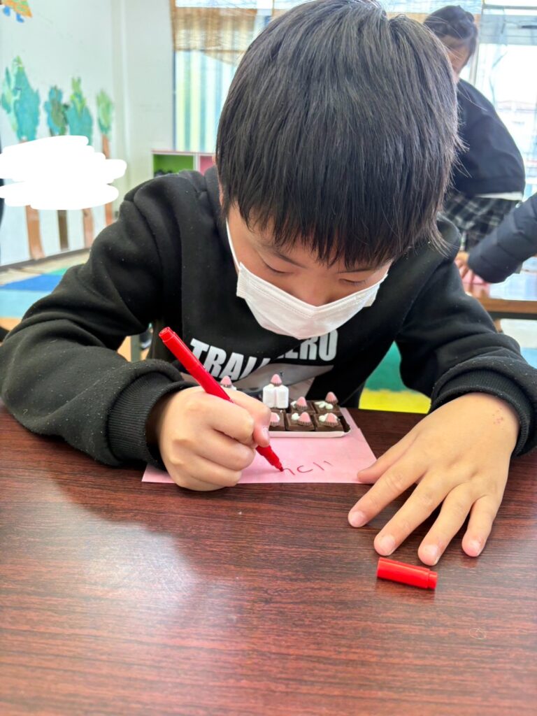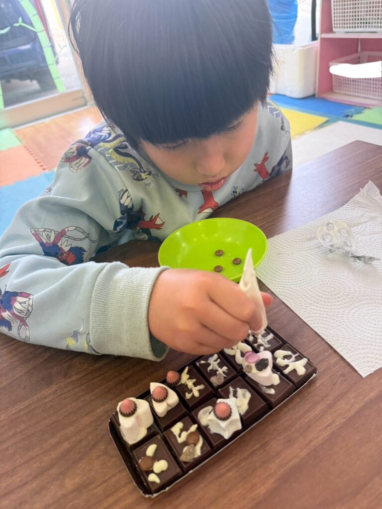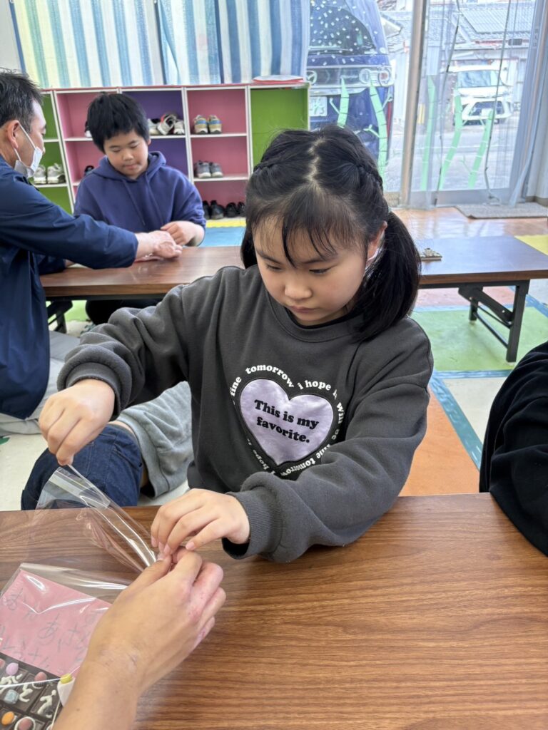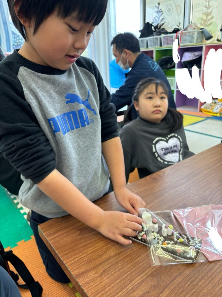 みんな一生懸命、チョコペンで字を書いてデコレーションしていました。