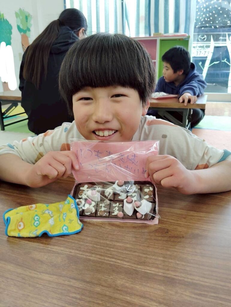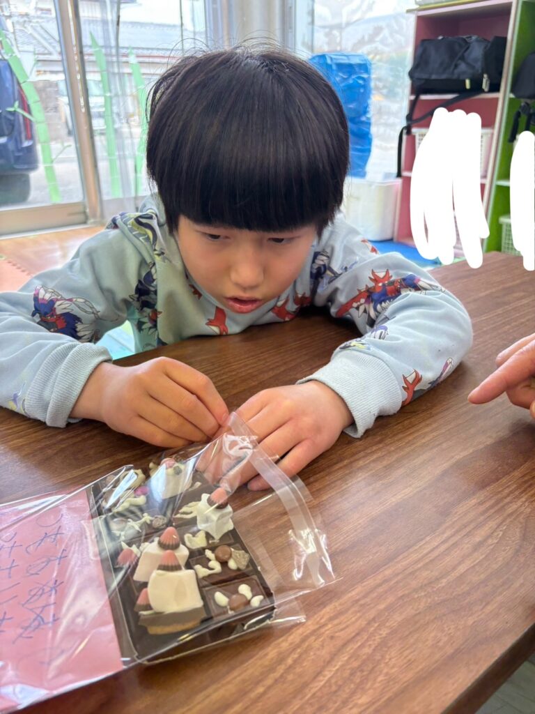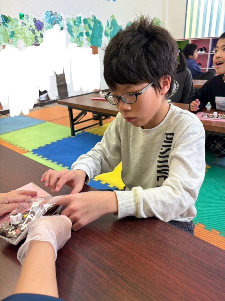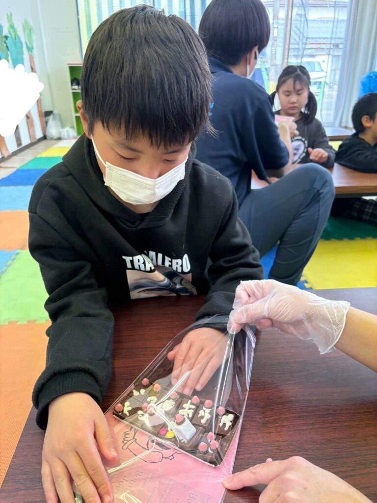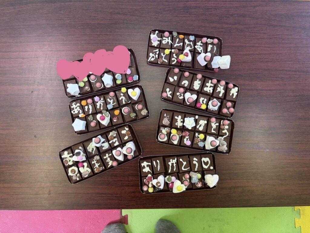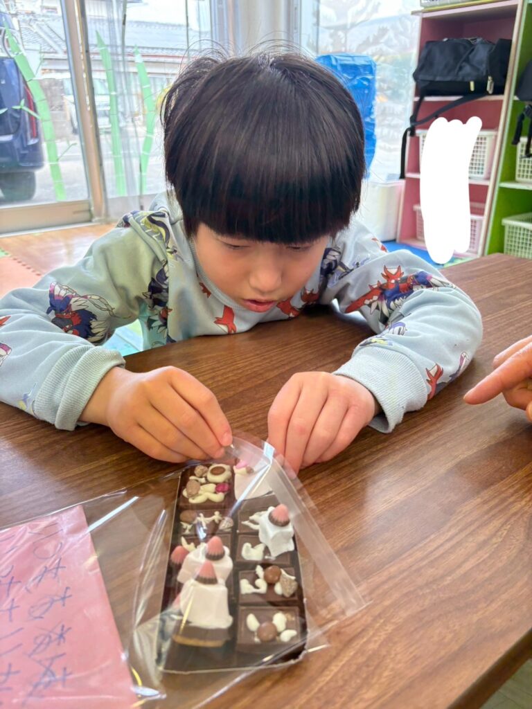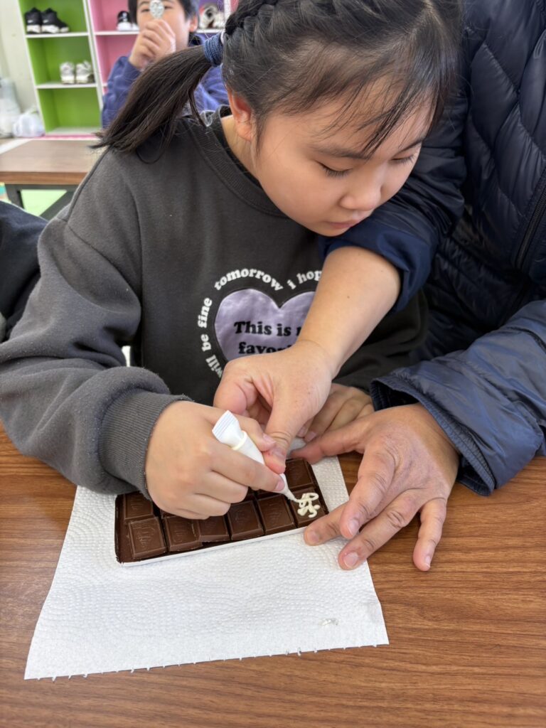みんな一生懸命、チョコペンで字を書いてデコレーションしていました。