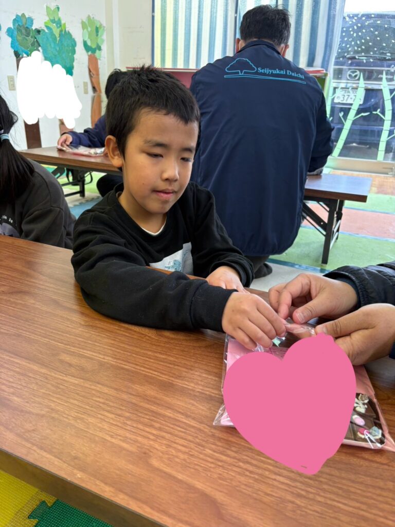 土曜日はバレンタインだったので、保護者に向けてバレンタインのお菓子を作りました。↓