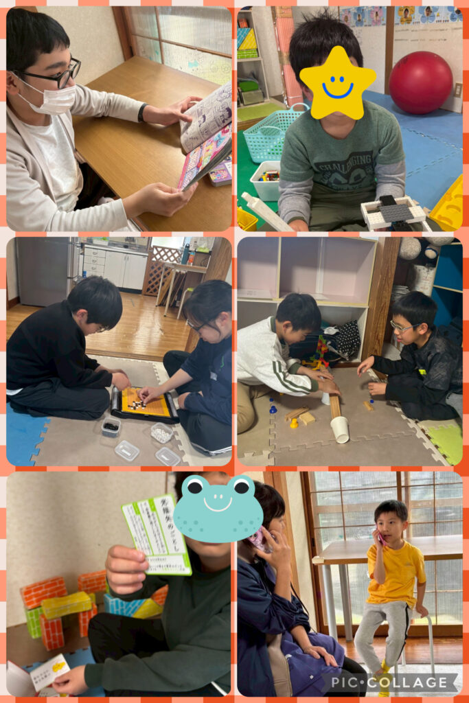 自由活動や集団活動の様子です。春休み思いっきり遊んでいろんな表情を見せてくれました☺️