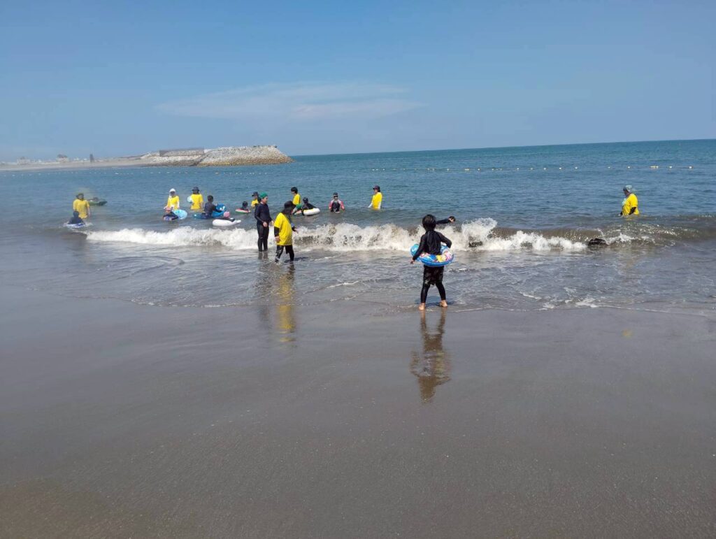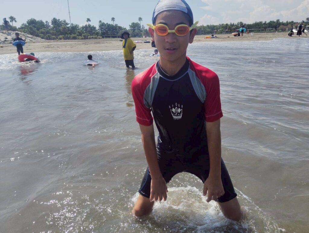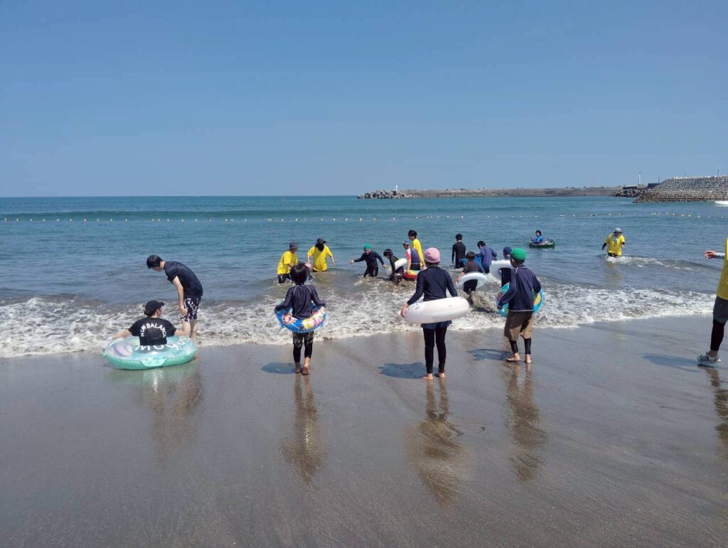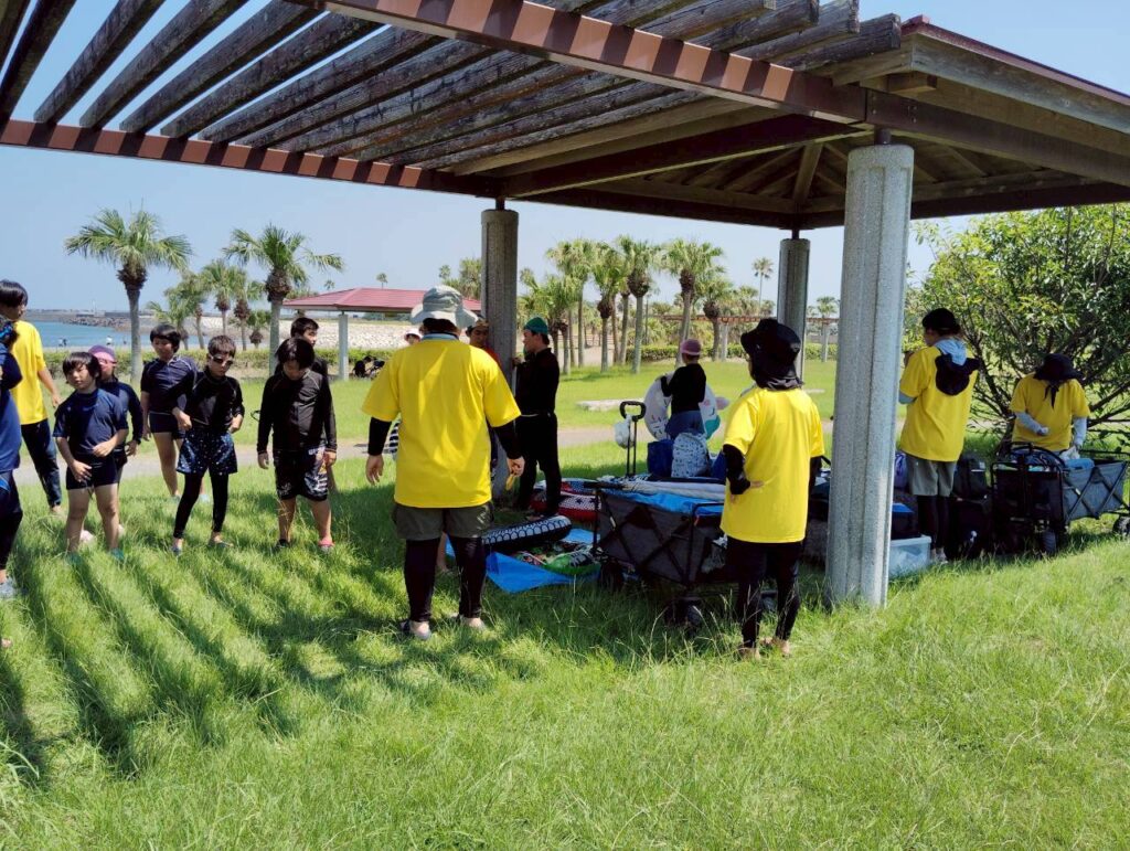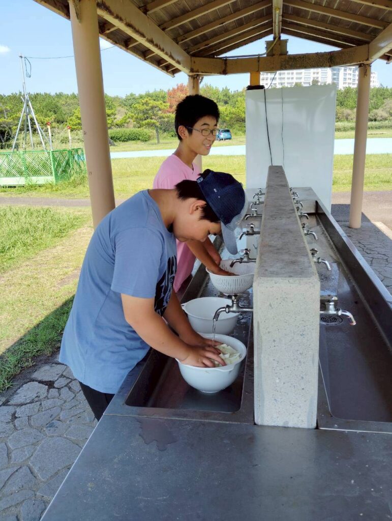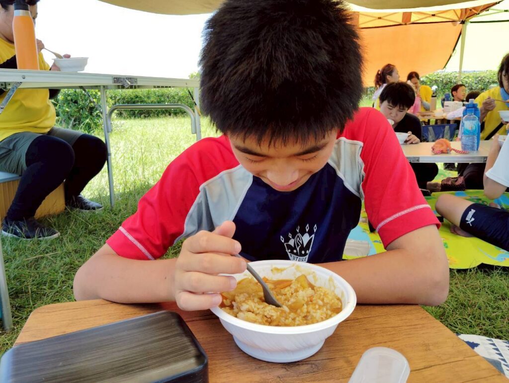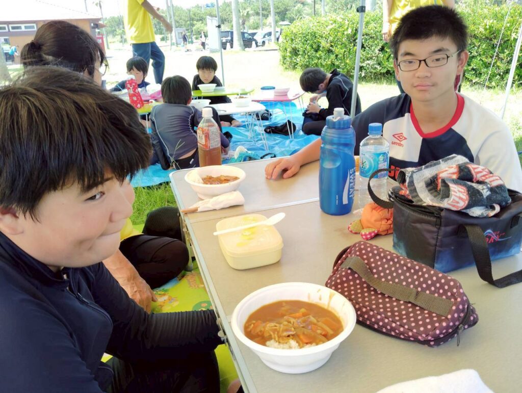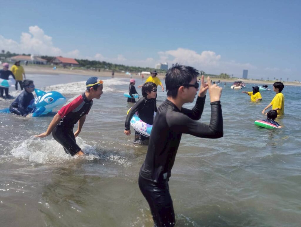お休みが多くて児童は少なめでしたが、サンビーチ一ツ葉のバーベキューサイトでカレーライス作りをしてお腹いっぱい食べ、十分に休憩を取った後は、海水浴を楽しみました。先日の青島と違って波も強く、子どもたちは何度も波と戯れていました。しかし、児童を守る職員は荒い波に足腰を踏ん張って耐えました。