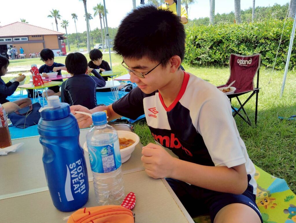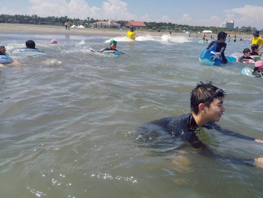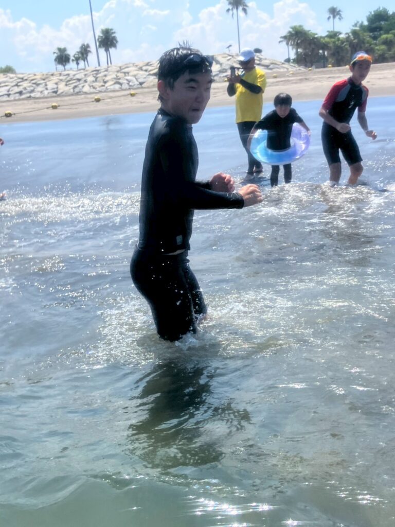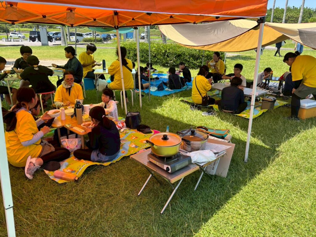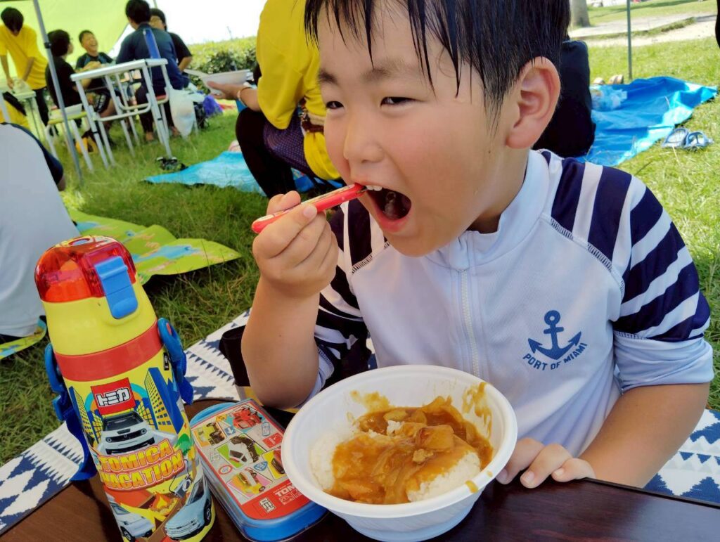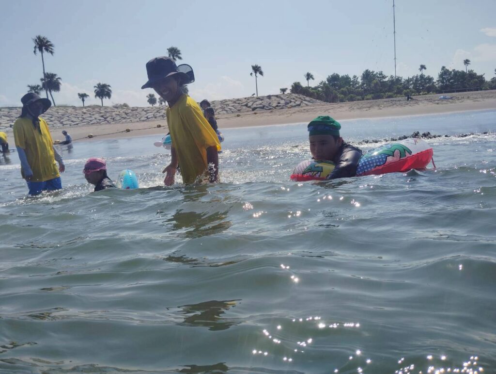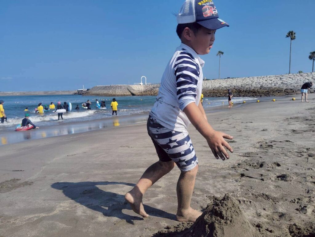 お休みが多くて児童は少なめでしたが、サンビーチ一ツ葉のバーベキューサイトでカレーライス作りをしてお腹いっぱい食べ、十分に休憩を取った後は、海水浴を楽しみました。先日の青島と違って波も強く、子どもたちは何度も波と戯れていました。しかし、児童を守る職員は荒い波に足腰を踏ん張って耐えました。