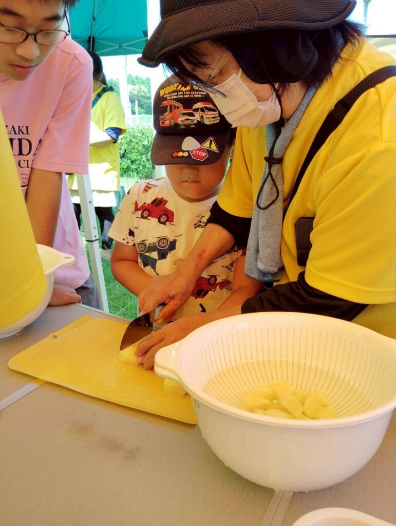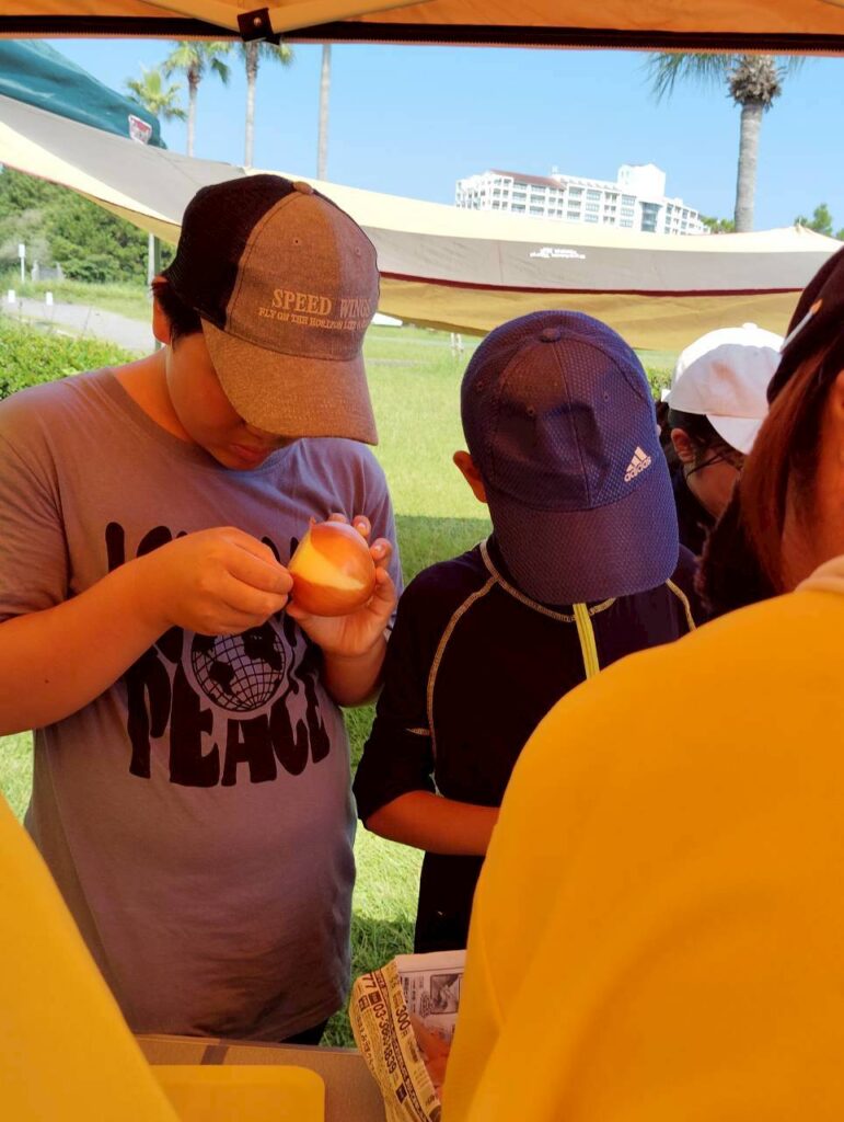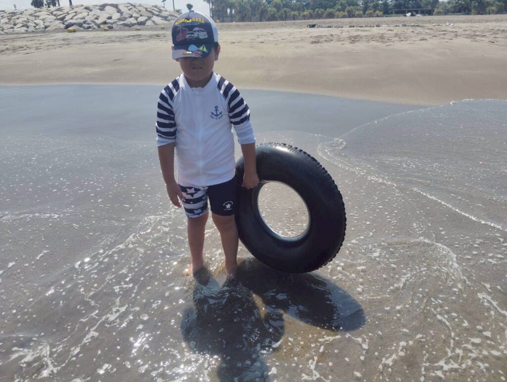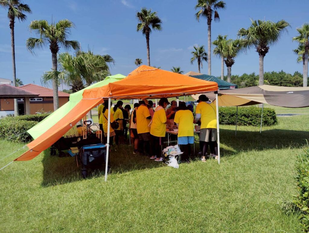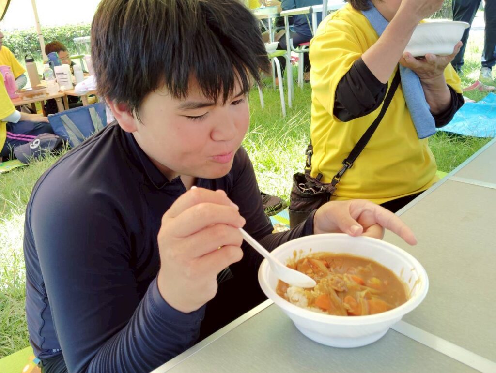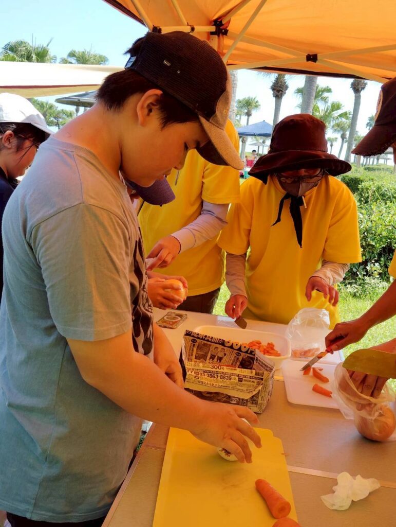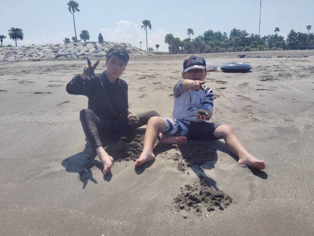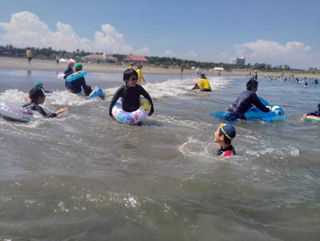 お休みが多くて児童は少なめでしたが、サンビーチ一ツ葉のバーベキューサイトでカレーライス作りをしてお腹いっぱい食べ、十分に休憩を取った後は、海水浴を楽しみました。先日の青島と違って波も強く、子どもたちは何度も波と戯れていました。しかし、児童を守る職員は荒い波に足腰を踏ん張って耐えました。