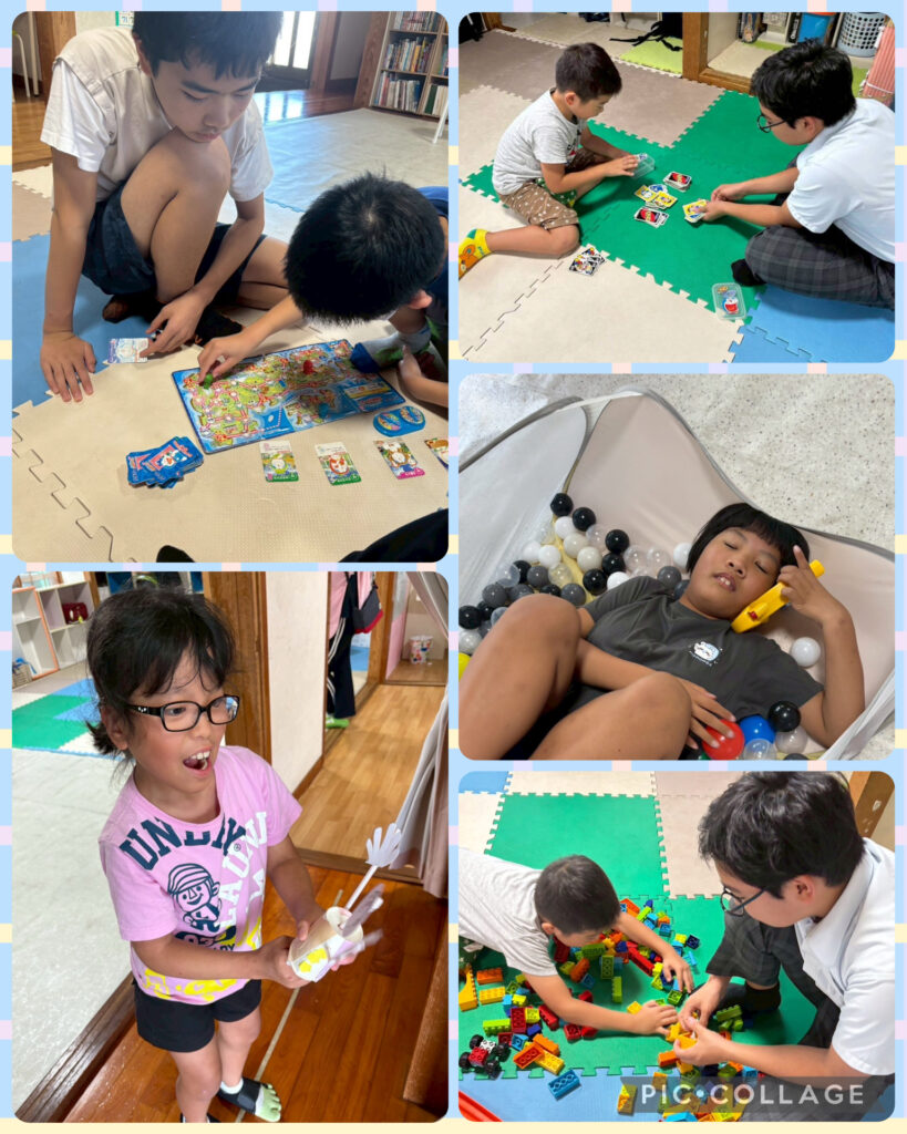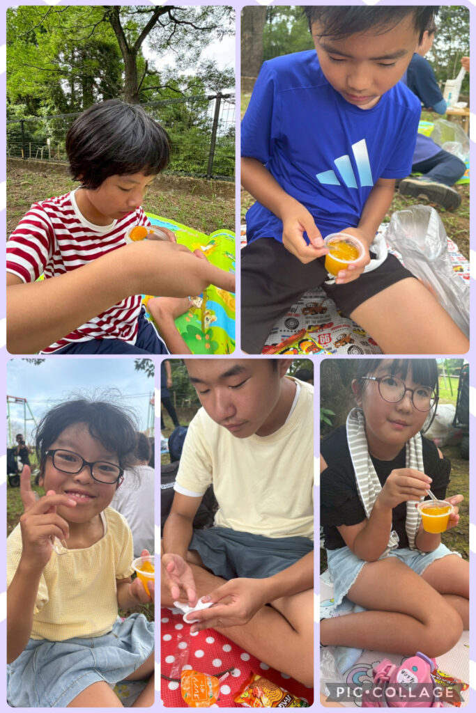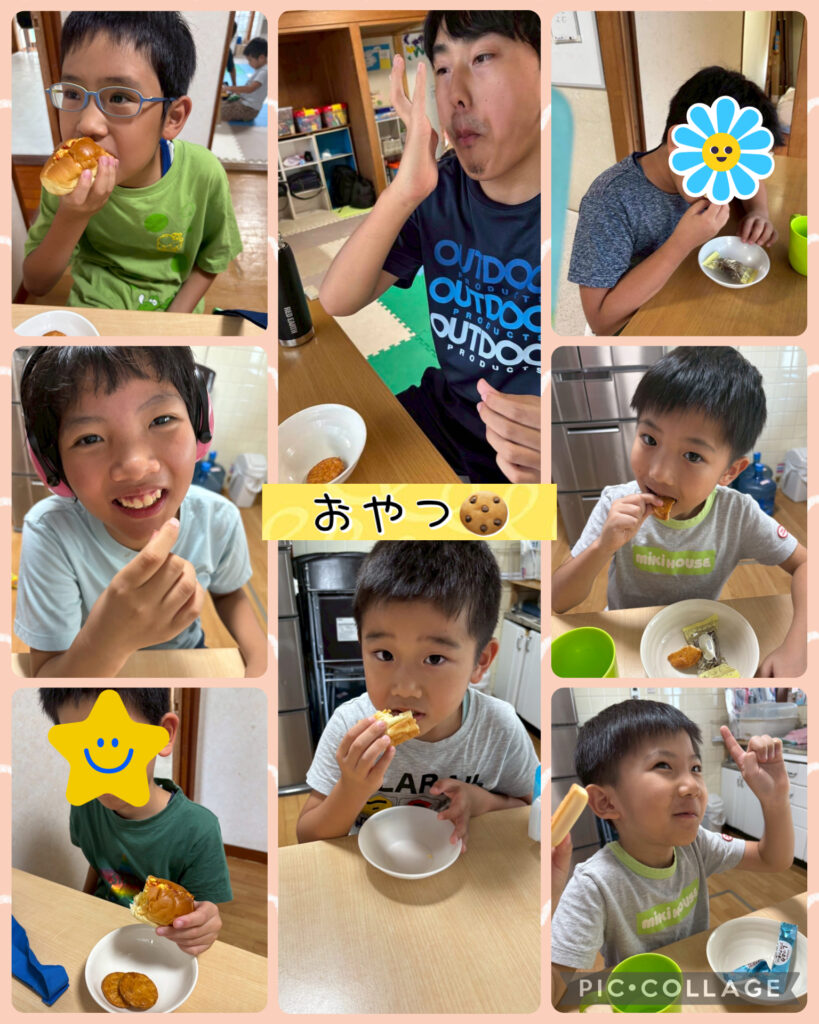 おやつや自由活動の様子を載せています。おやつでは少し苦手なものでも挑戦して食べています!