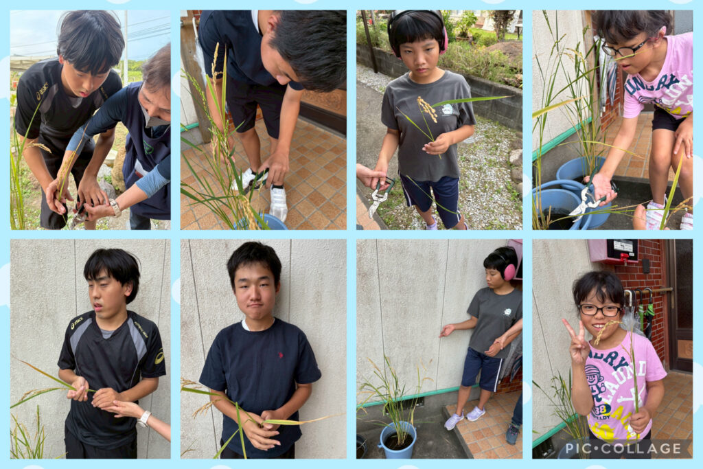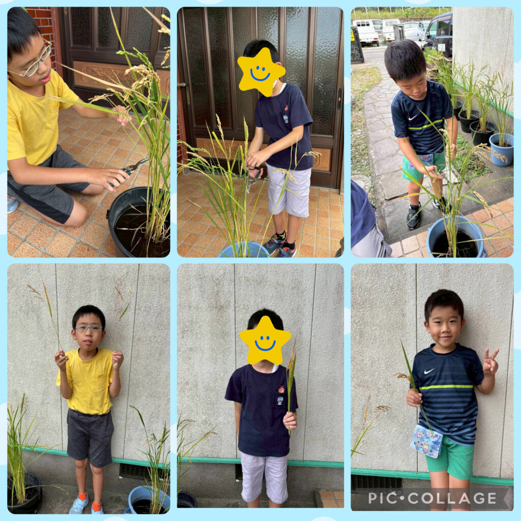 今週から稲の刈り取りを行いました。児童1人ずつ好きな稲を選びハサミで切ったものを持ち帰りました。自分たちで植えた達成感からとても素敵な笑顔でした☺️