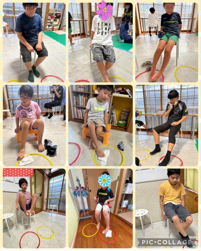 今週の運動は足指運動です。たとえ取れなくても足をグーパーする動きが大切です!最後まで諦めず取り組む姿がとっても素敵です👏