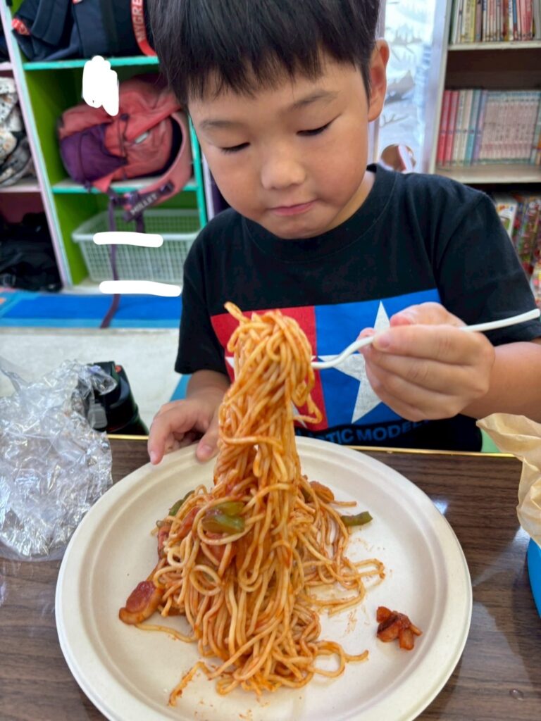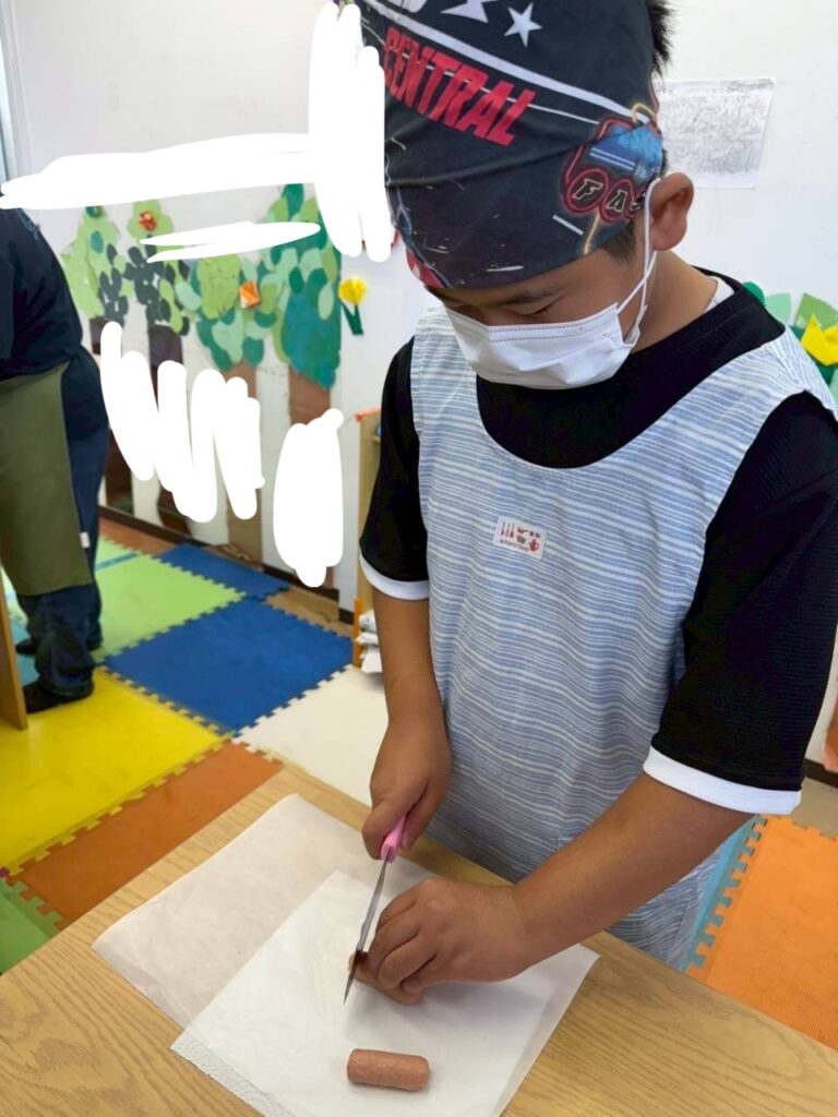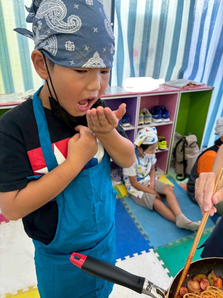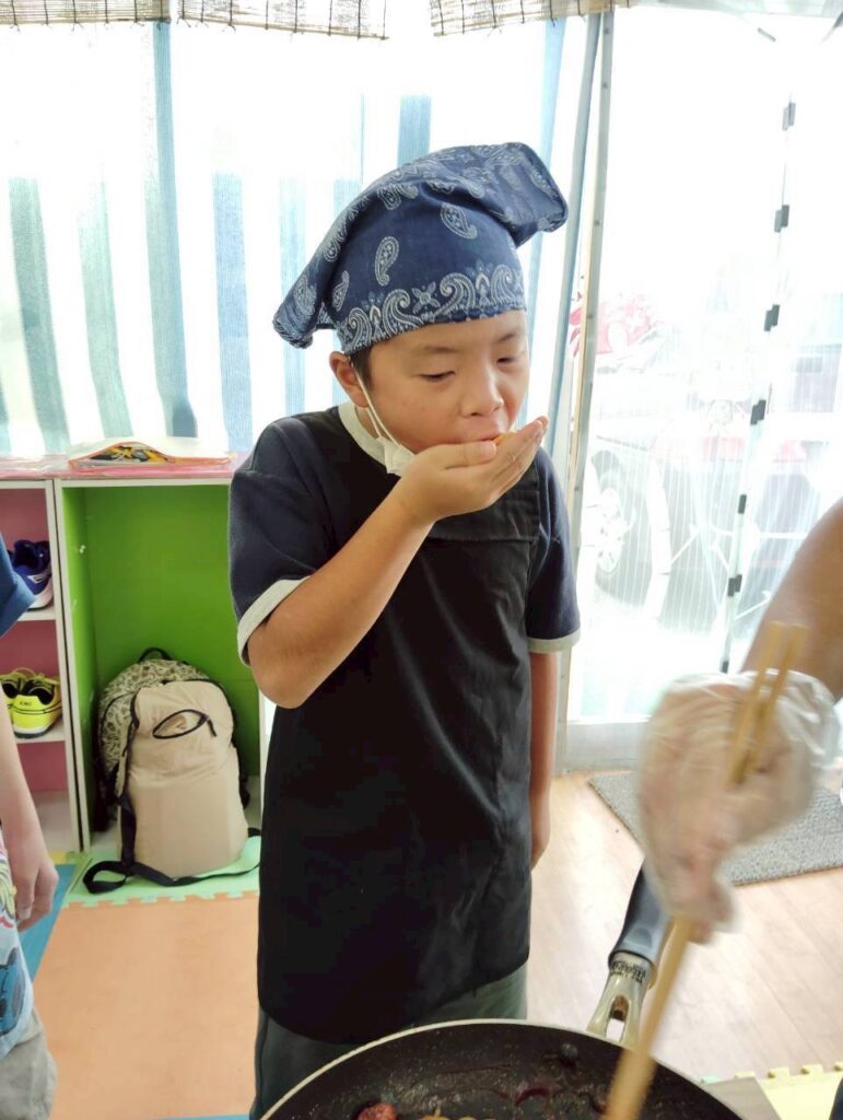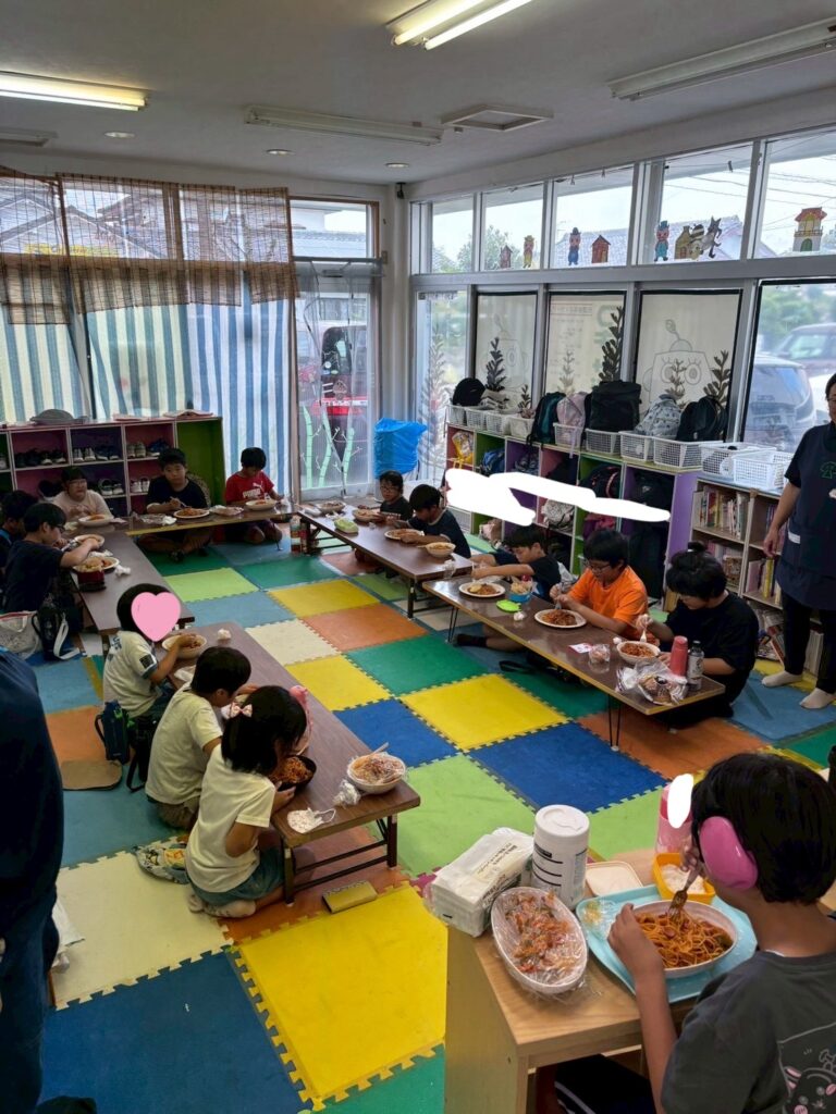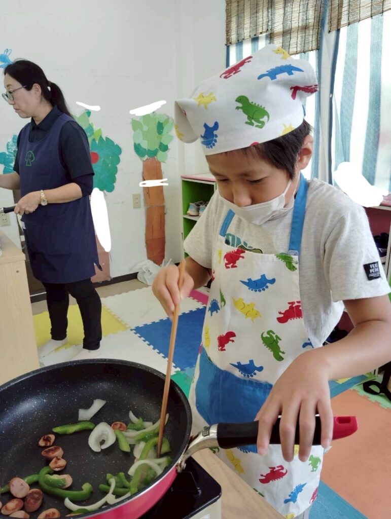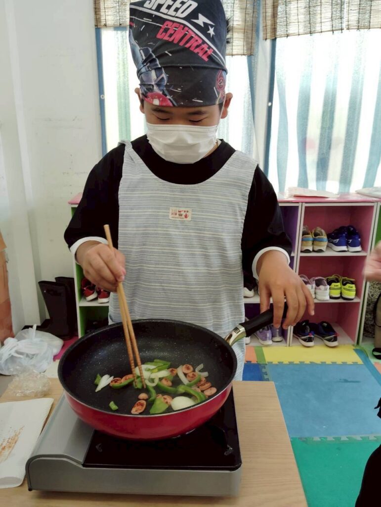 午前中はつきみがおか事業所に3事業所の児童が集まりナポリタンを作りました。