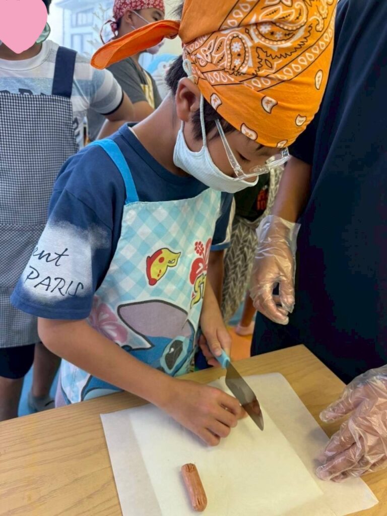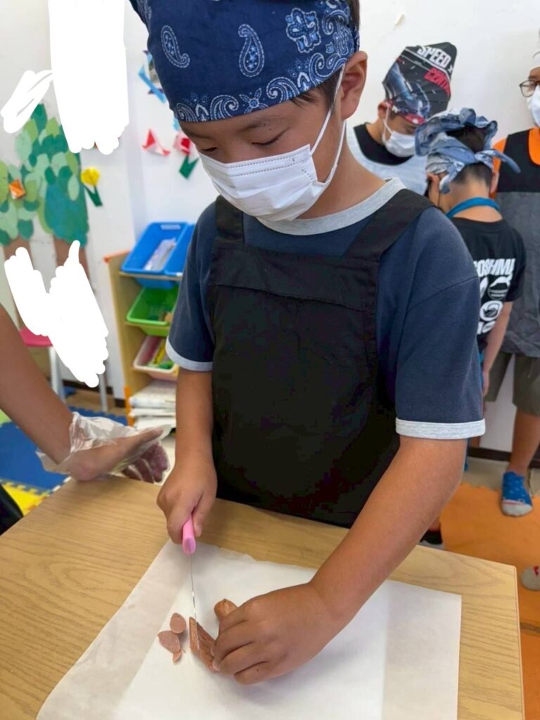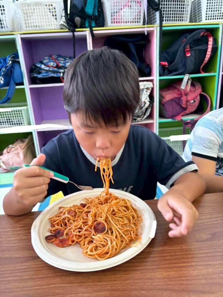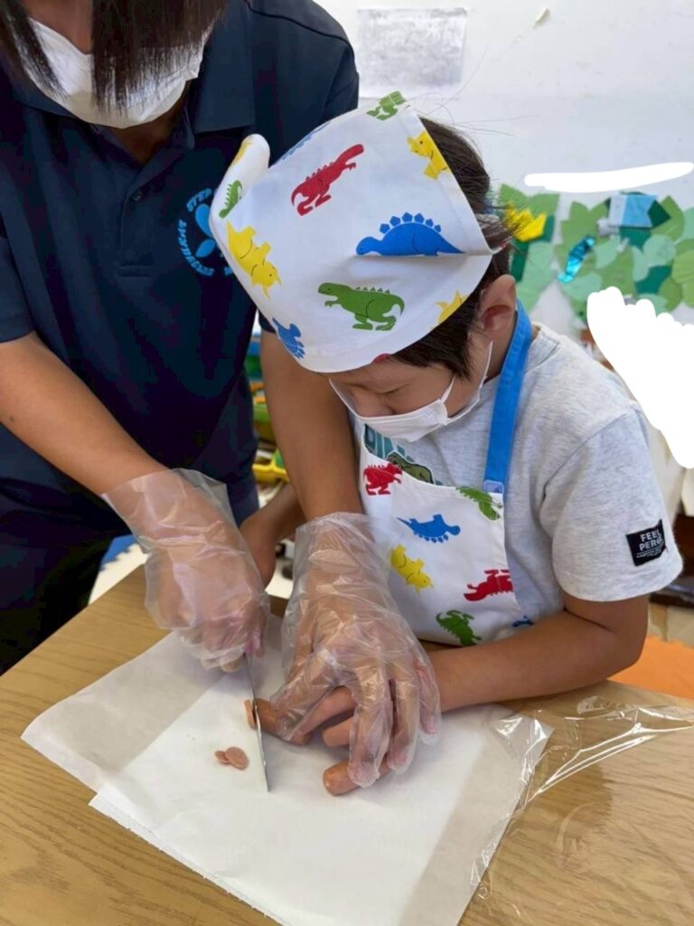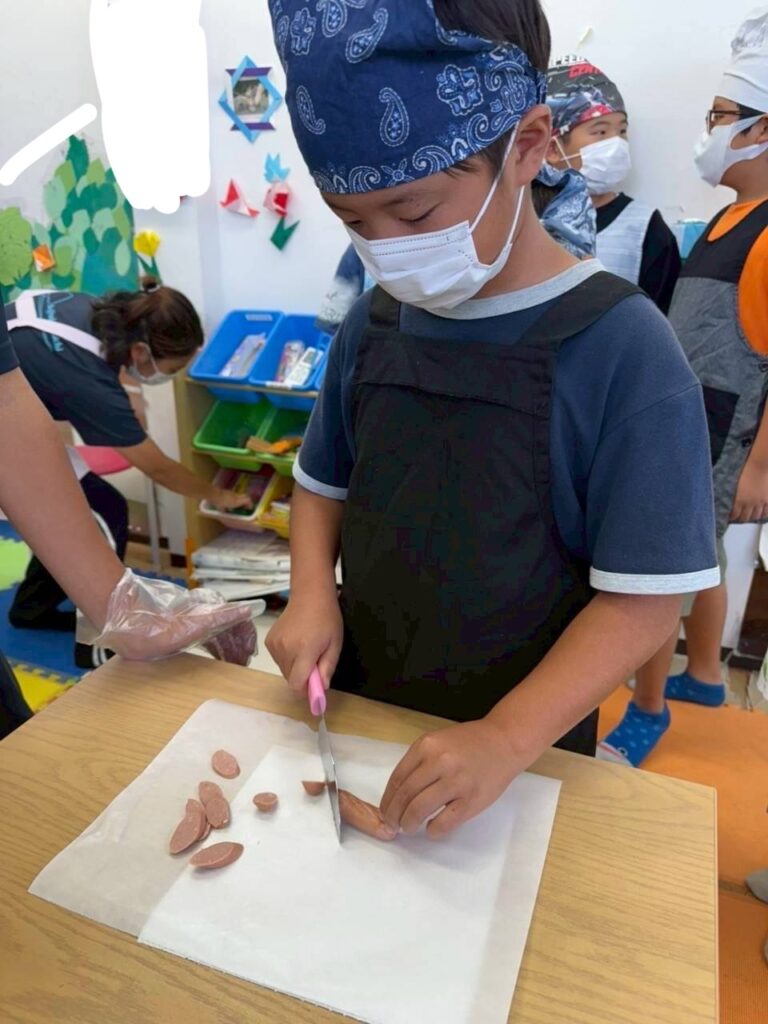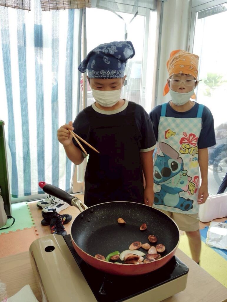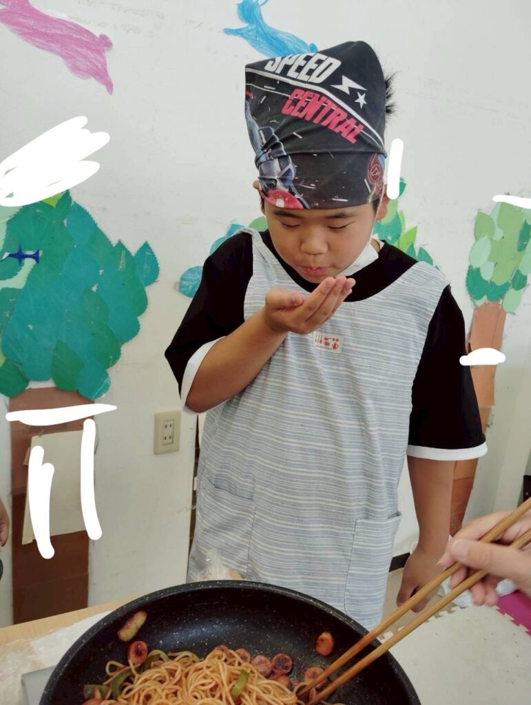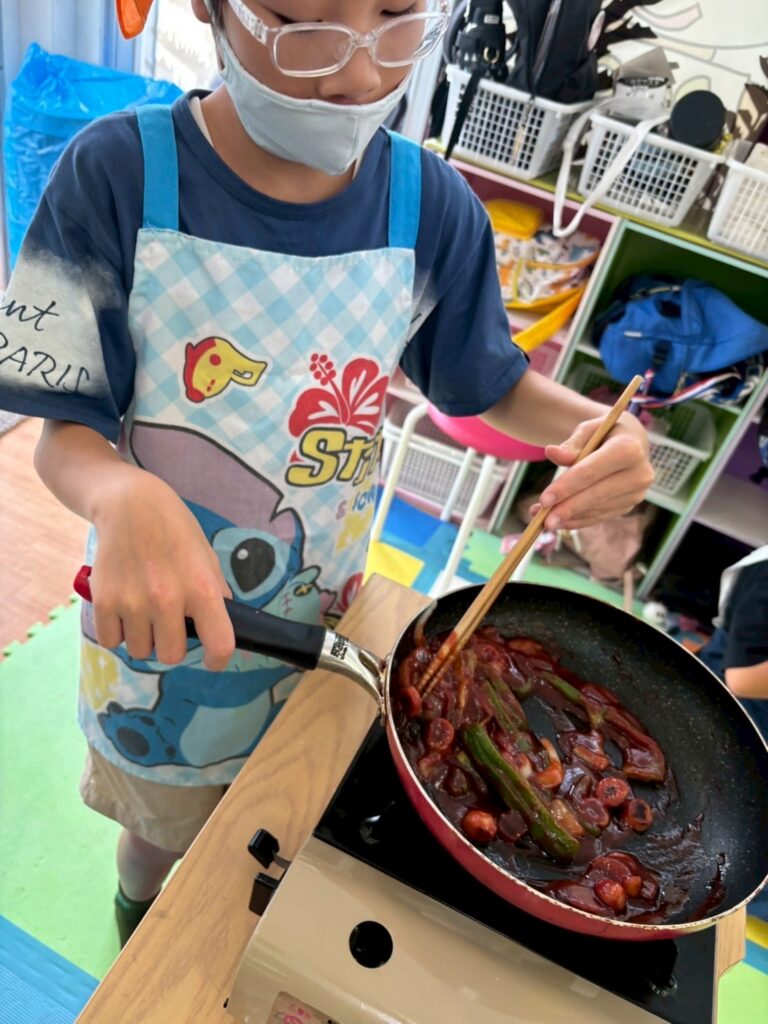 午前中はつきみがおか事業所に3事業所の児童が集まりナポリタンを作りました。