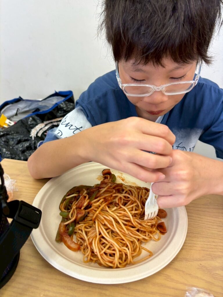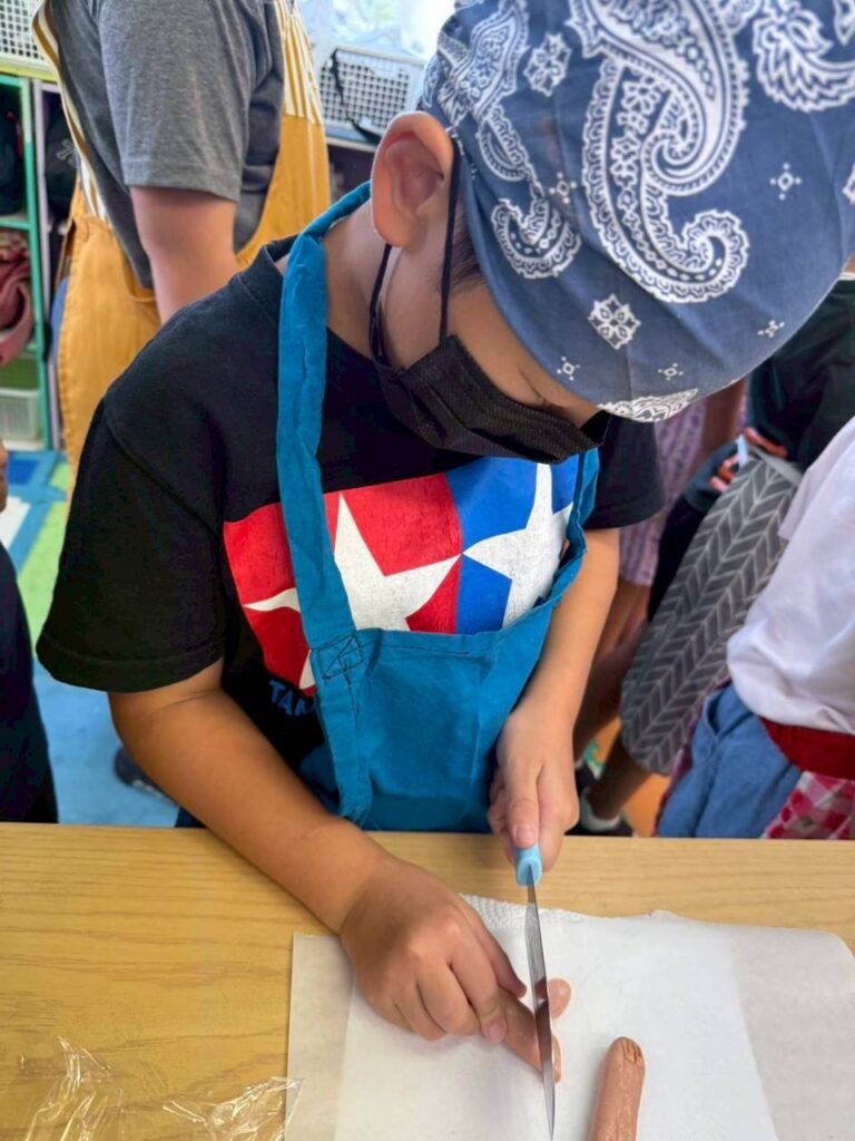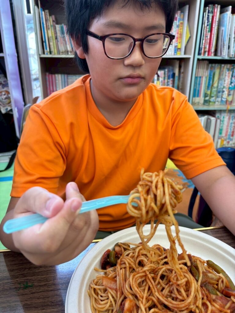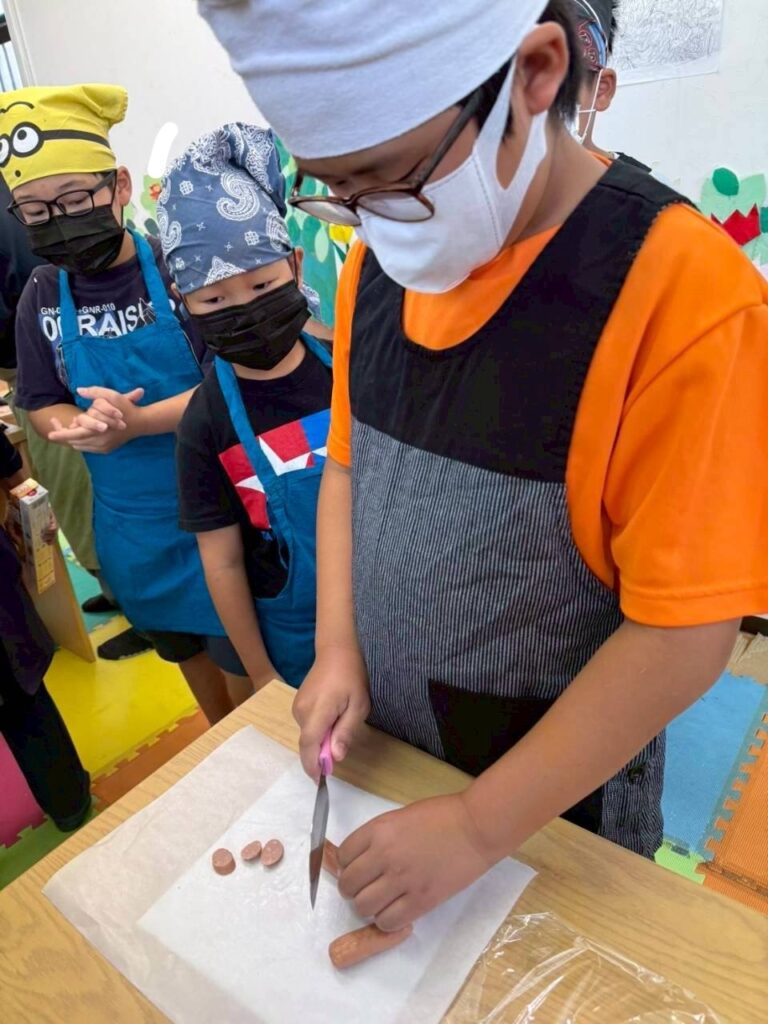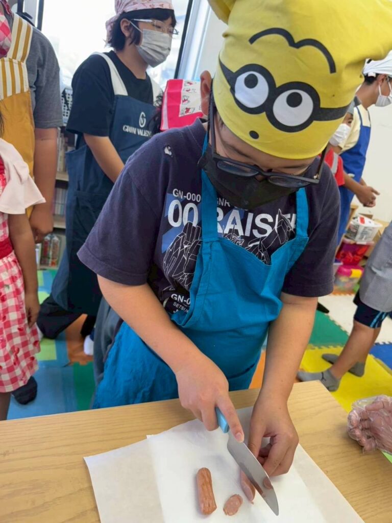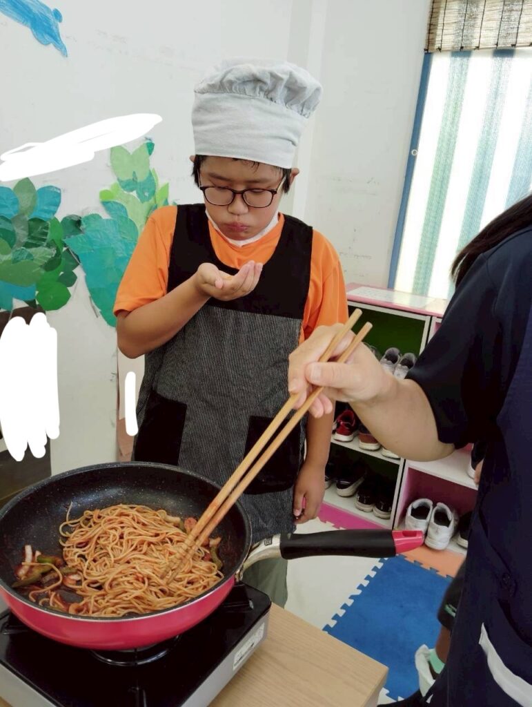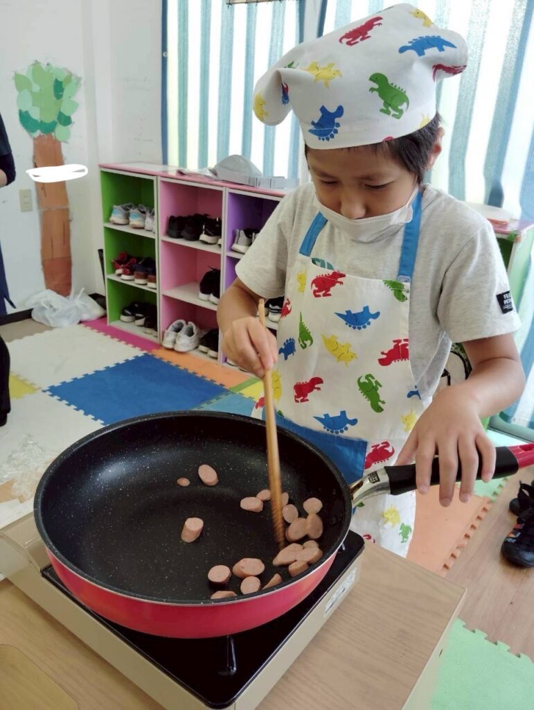 午前中はつきみがおか事業所に3事業所の児童が集まりナポリタンを作りました。